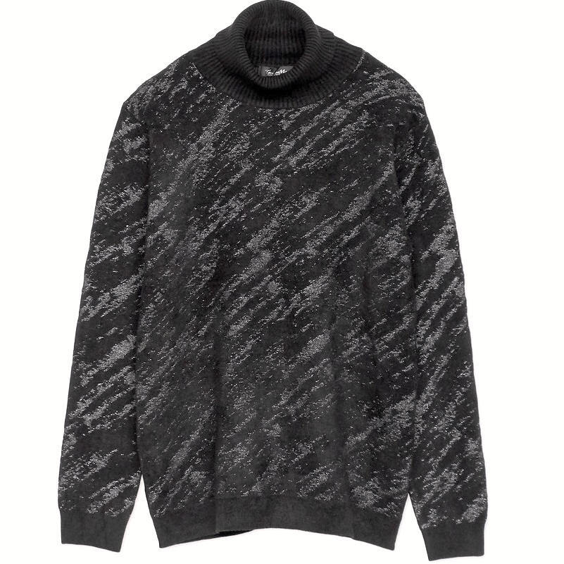 ■ ストーム(嵐)のように流れる柄をモールヤーンで編み上げたタートルネックのニット