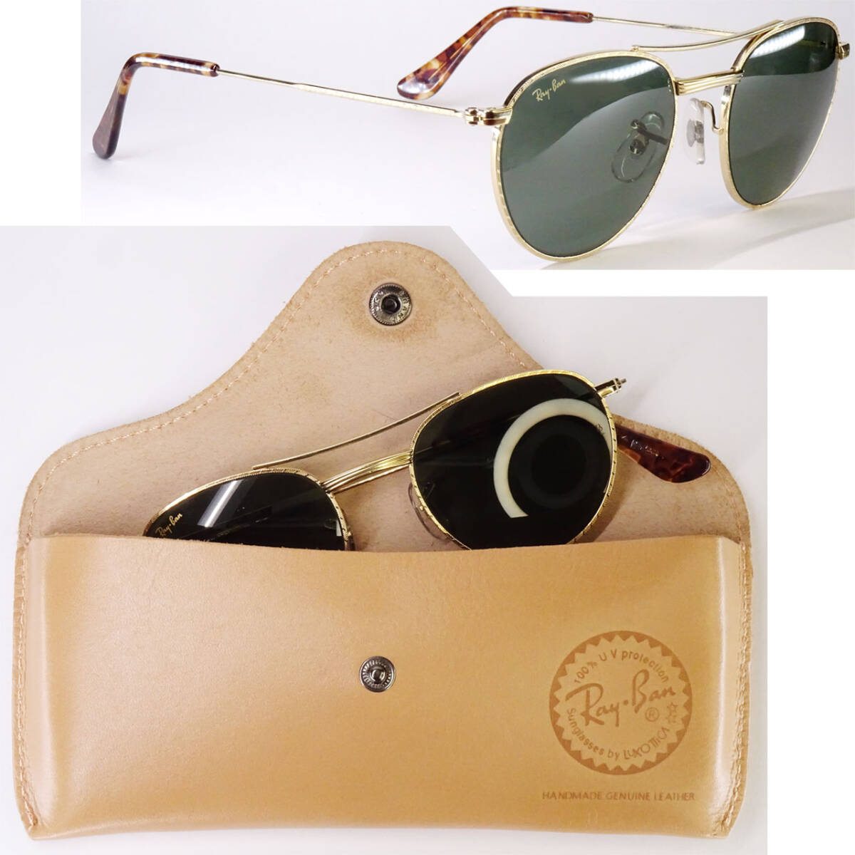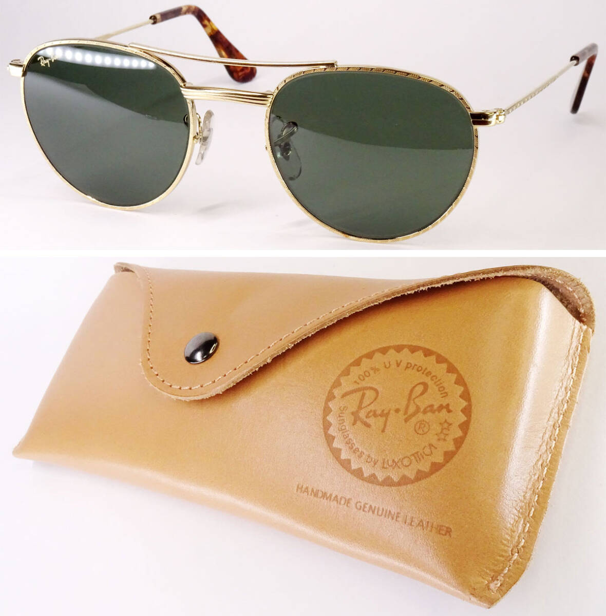 ■■80's.B&L製/未使用品/ラウンド・ROUND/レア品/BAUSCH&LOMB・ボシュロム/Ray-Ban・レイバン/VINTAGE・ヴィンテージ/LUX・本革ケース製付