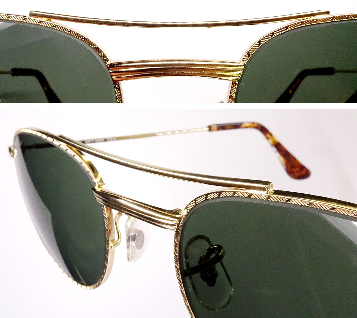 左テンプルの裏には‘B&L  RAY-BAN  U.S.A.’の印字、耳掛け部の裏には、