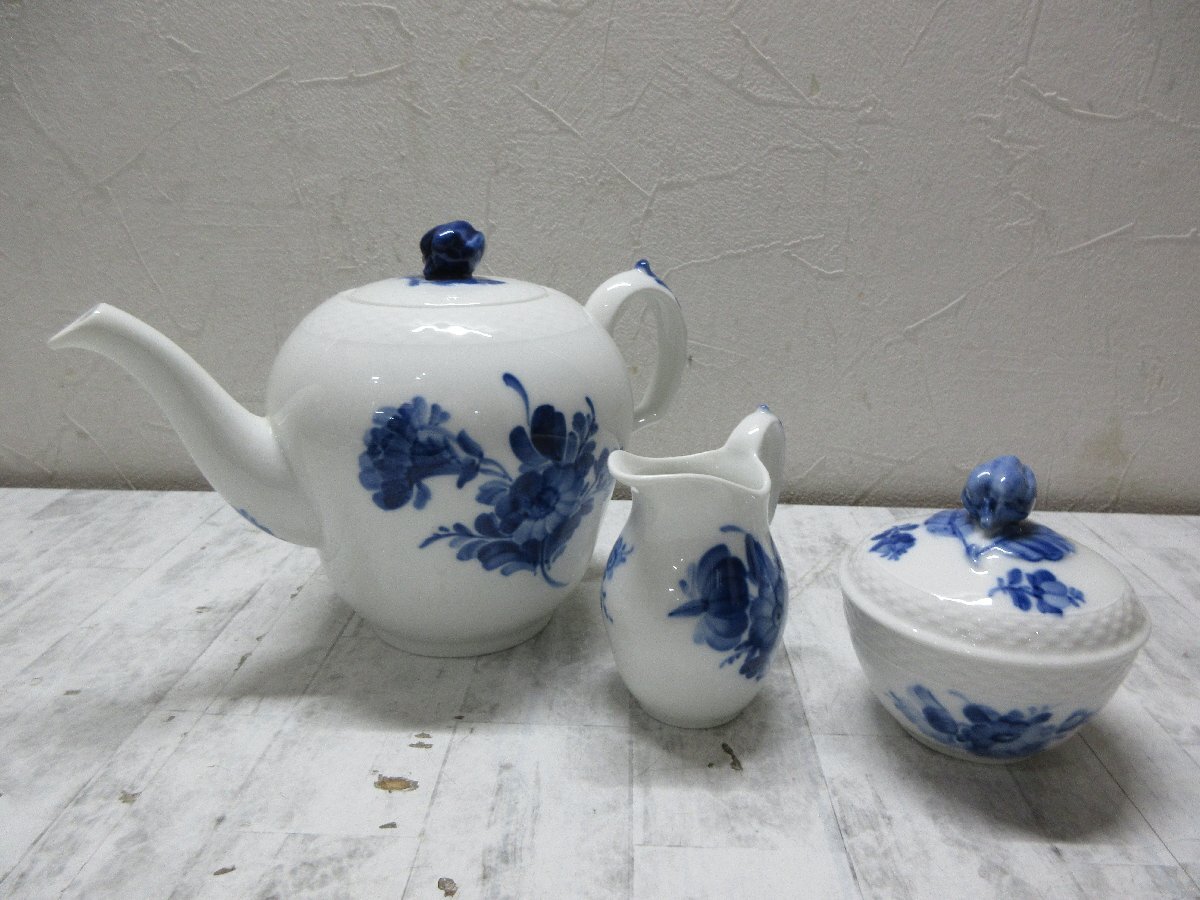 1円 Royal Copenhagen ロイヤルコペンハーゲン ブルーフラワー ティーポット シュガーポット クリーマー 3点 まとめ 【星見】