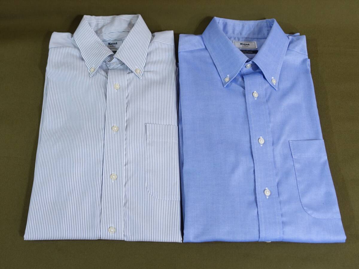●Kent IN TRADITIONのシャツ、2点のお得なまとめ売りです。 ●いずれも80/2 Two Ply Yarn(80番双糸)の上質なコットン素材を使用したもの。サイズ表記は共通です。 ●サイズ欄の実寸の数値はストライプ/ブルー無地の数値を順に併記します。 |