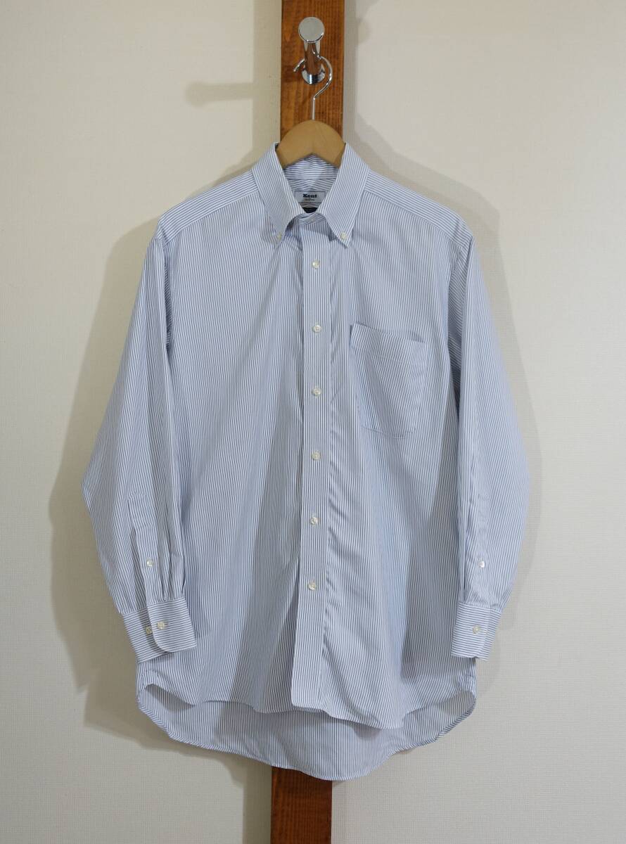 ●入手時襟に汚れがありオキシクリーン漬けの上洗濯しました。スチーマーにて仕上げています。 ●いずれも大分薄くはなったもののうっすら落ち切らず残っております。 ●ストライプの方は襟裏ボタンが欠損、ブルーの方は身頃右サイドの縫い目のふちがささくれて露出しています。いずれも内タグにクリーニングの際の名前の書き込みがございます。 ●ほか目立つ汚れやダメージなどはありません。 ※ノークレーム・ノーリターンでお願いします。 |