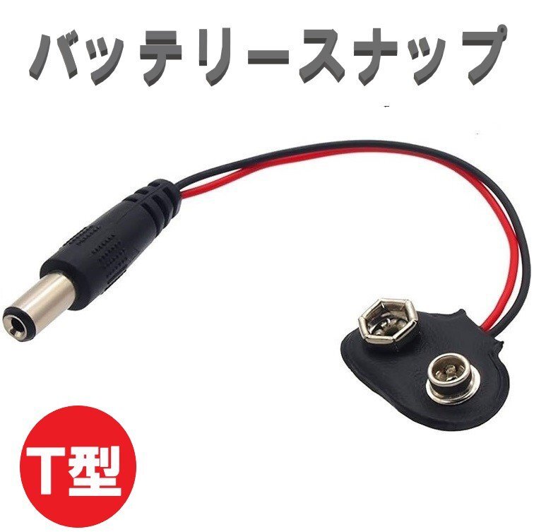 T型バッテリースナップ 15cm 9V電池 ACアダプタ 電池コネクター ワイヤーケーブル DIY