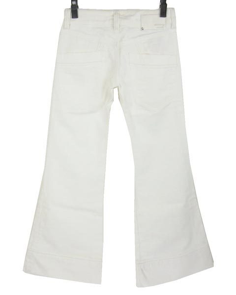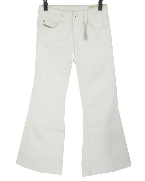 | ディーゼルのクールなホワイトデニム☆爽やかなホワイトカラーなので、デニムながらお上品にお召し頂けます。裾広がりで美脚効果も期待出来る嬉しい一枚です。フロント左にディーゼルのロゴ入りチャームがあしらわれております。 |