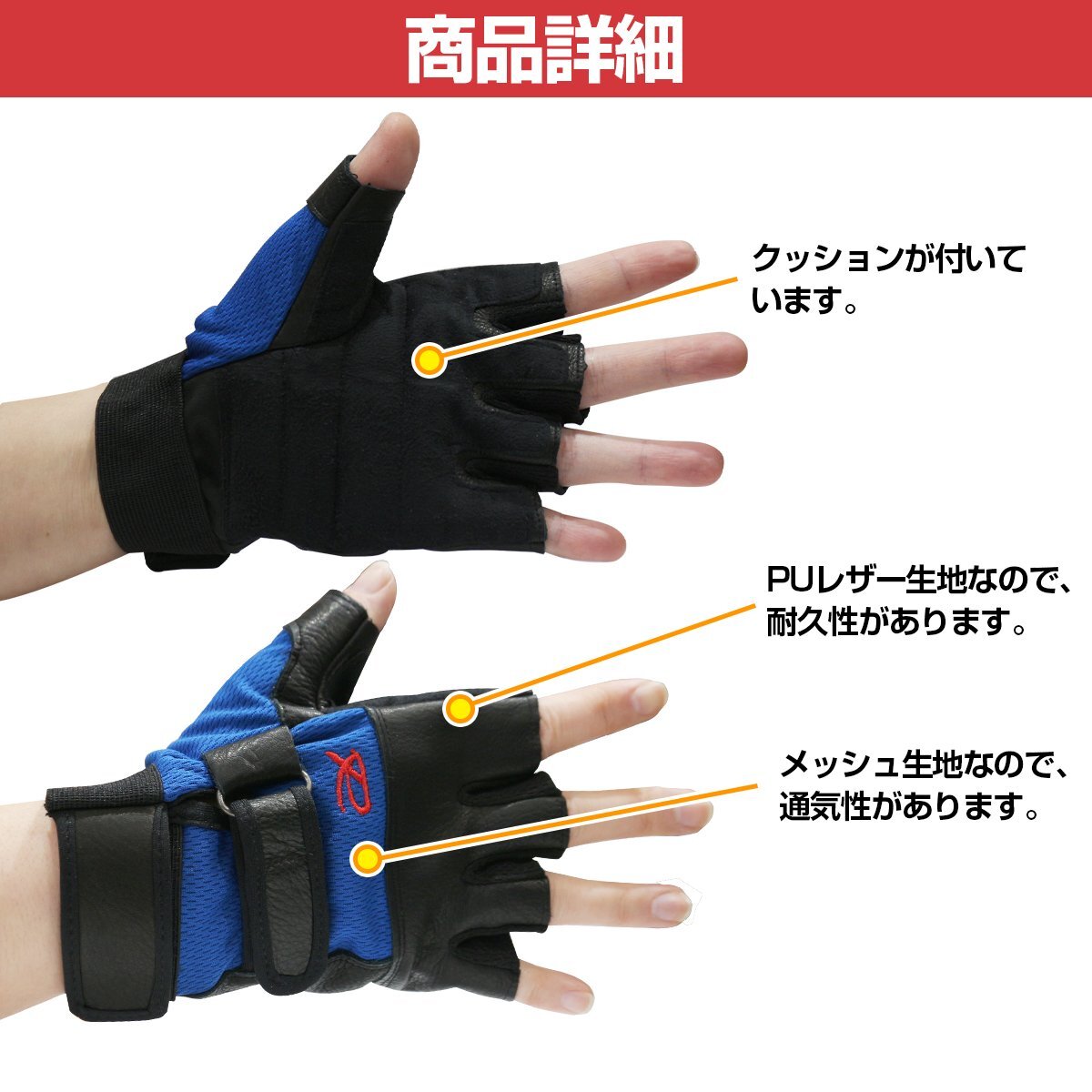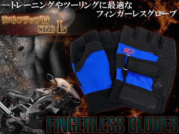 [新品即納]ハーフフィンガーグローブ フィンガーレスグローブ ハーフグローブ Lサイズ ブルー 青 指なし 手袋 トレーニング バイク