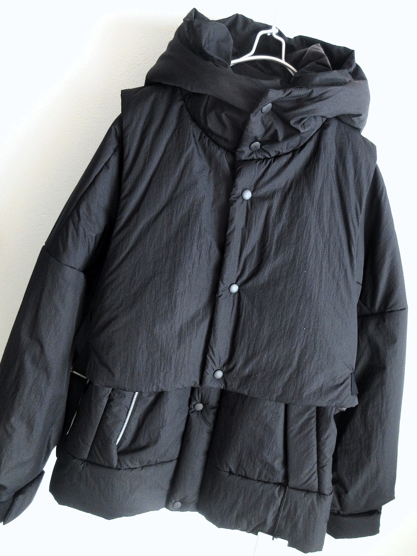 ・フード付きベスト(サイドアジャスト付き)と、ノーカラーのブルゾンはレイヤードでの着用はもちろん、それぞれでも着用可能な3WAY。