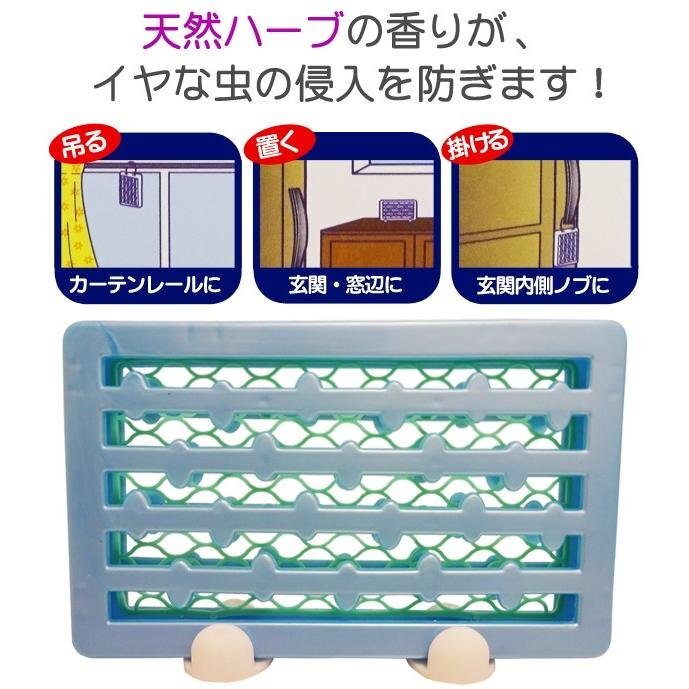 | 天然ハーブの香りでイヤな虫の侵入防止! 吊る、置く、掛けるの3WAY仕様で、 ご家庭内のあらゆるところに設置できます。 | |||||||||||||||