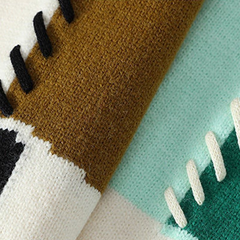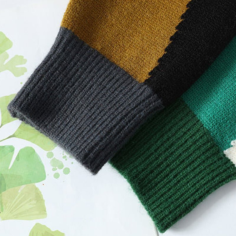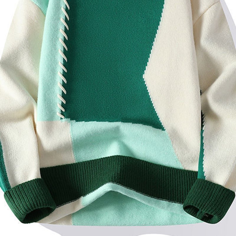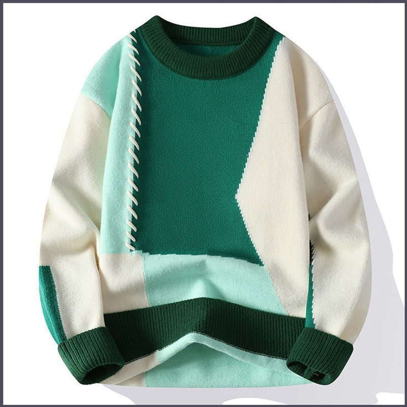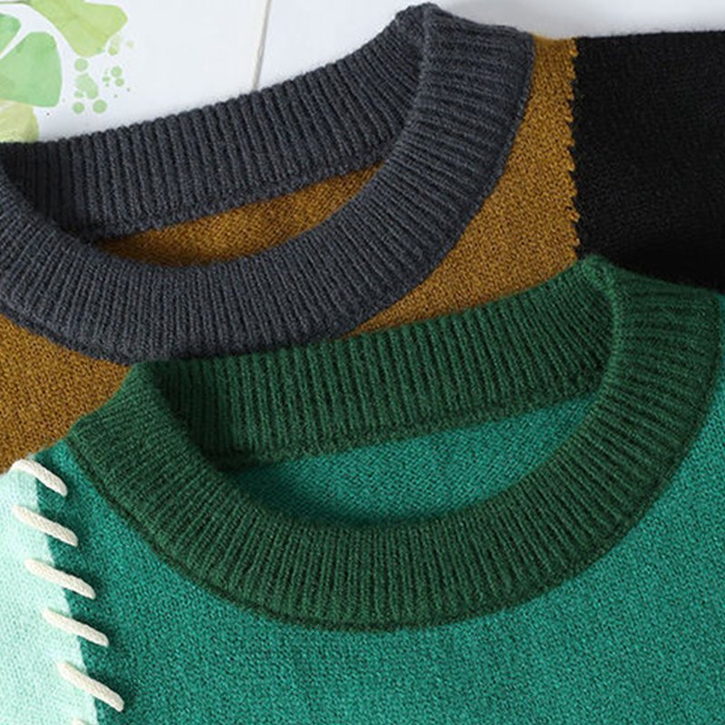 個性◆イタリア製 メンズ ウール混紡 配色 クルーネック ニット セーター リブ裾 防寒 保温 冬用 M/46 fz138