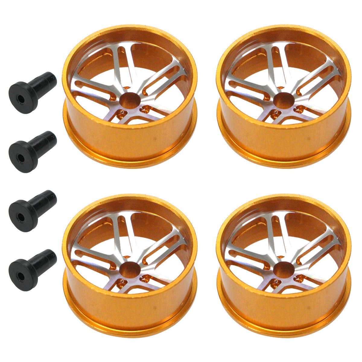 【新品即納】ミニ四駆用 4個セット アルミホイール ブラック デュアル 5スポーク 5穴 ローハイトタイヤ ホイル ホイール 金 ゴールド