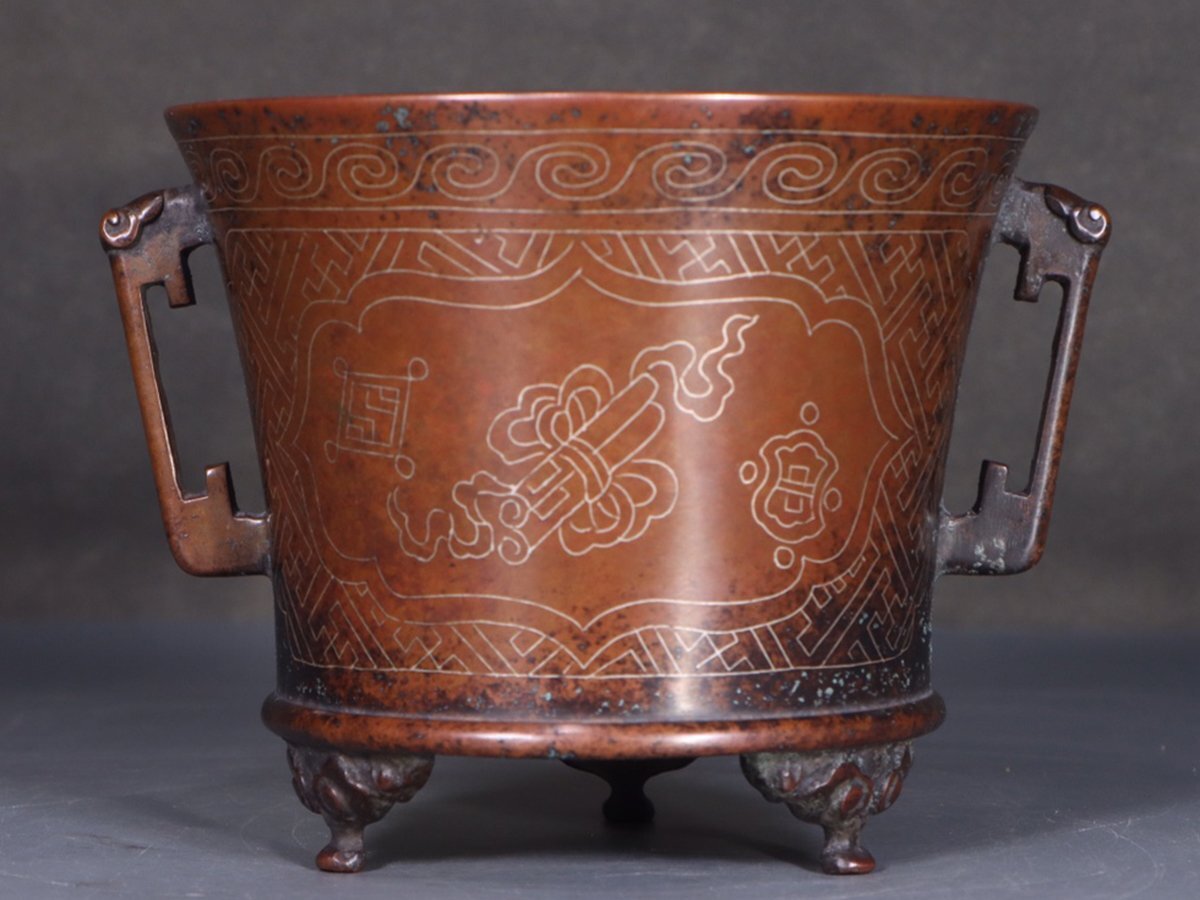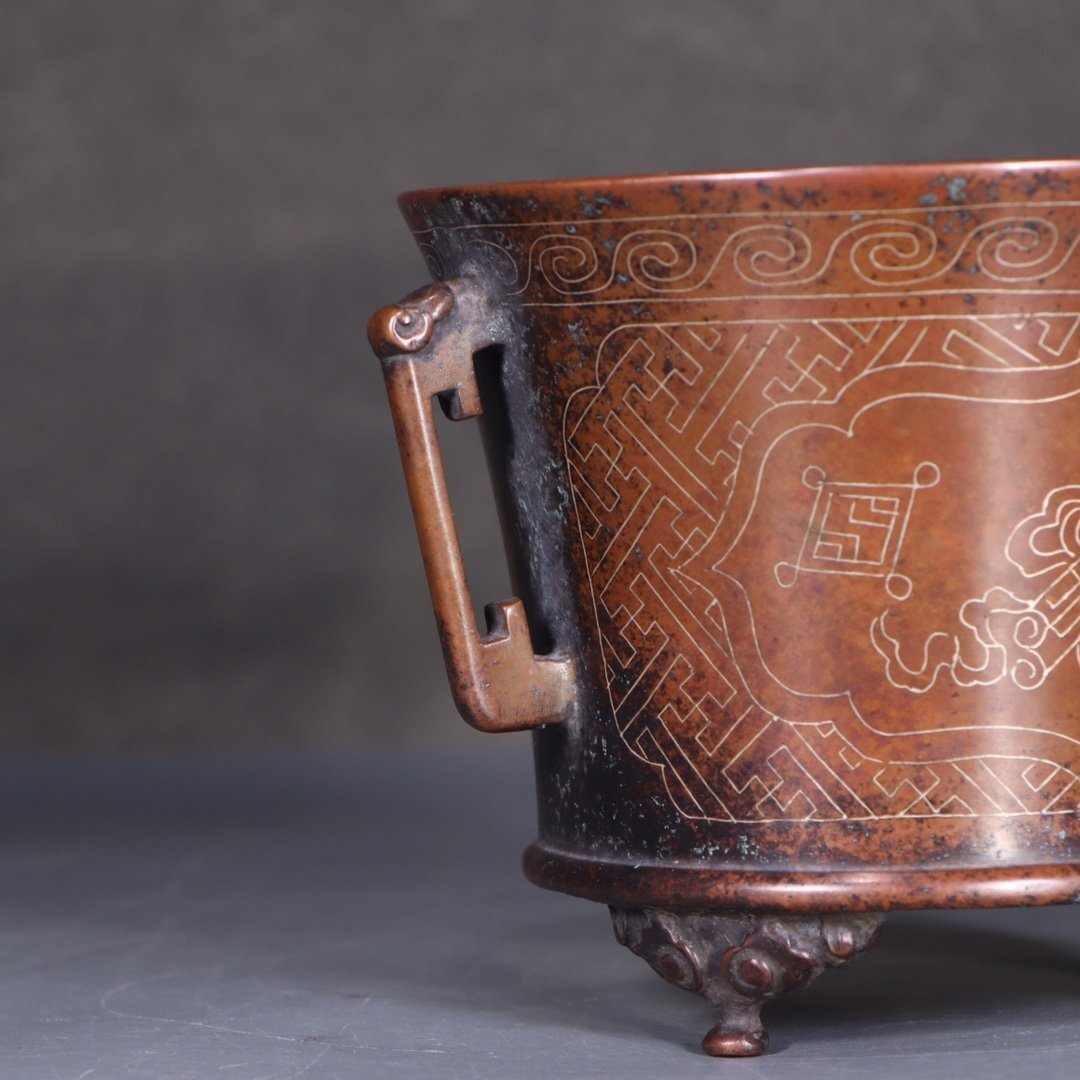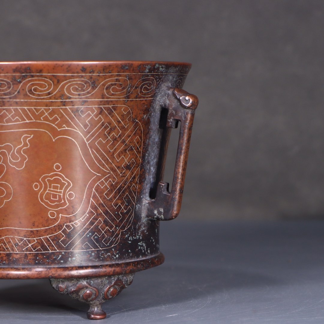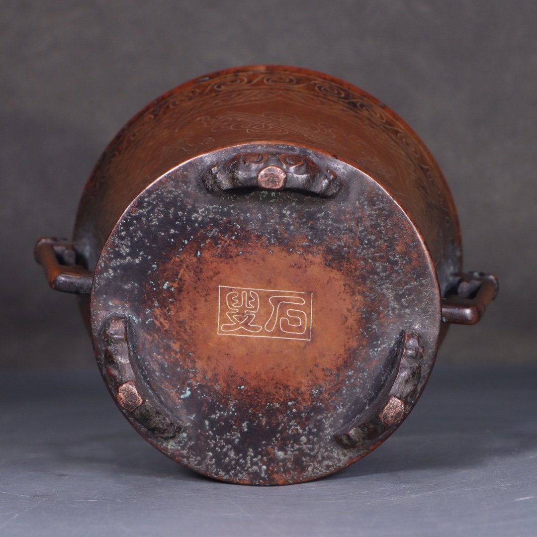 【安】明時代 石叟銘 銅胎 錯銀絲 八宝紋龍耳香炉 極細工 古置物 古擺件 中国古美術 時代物 古董品 352 サイズ(約寸) |