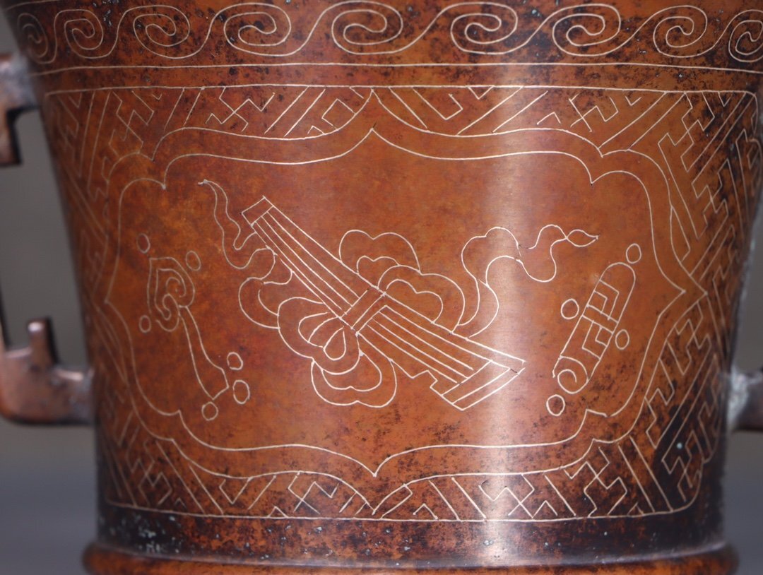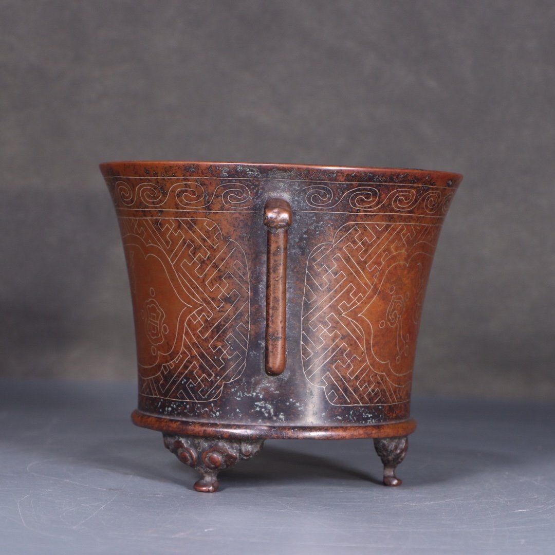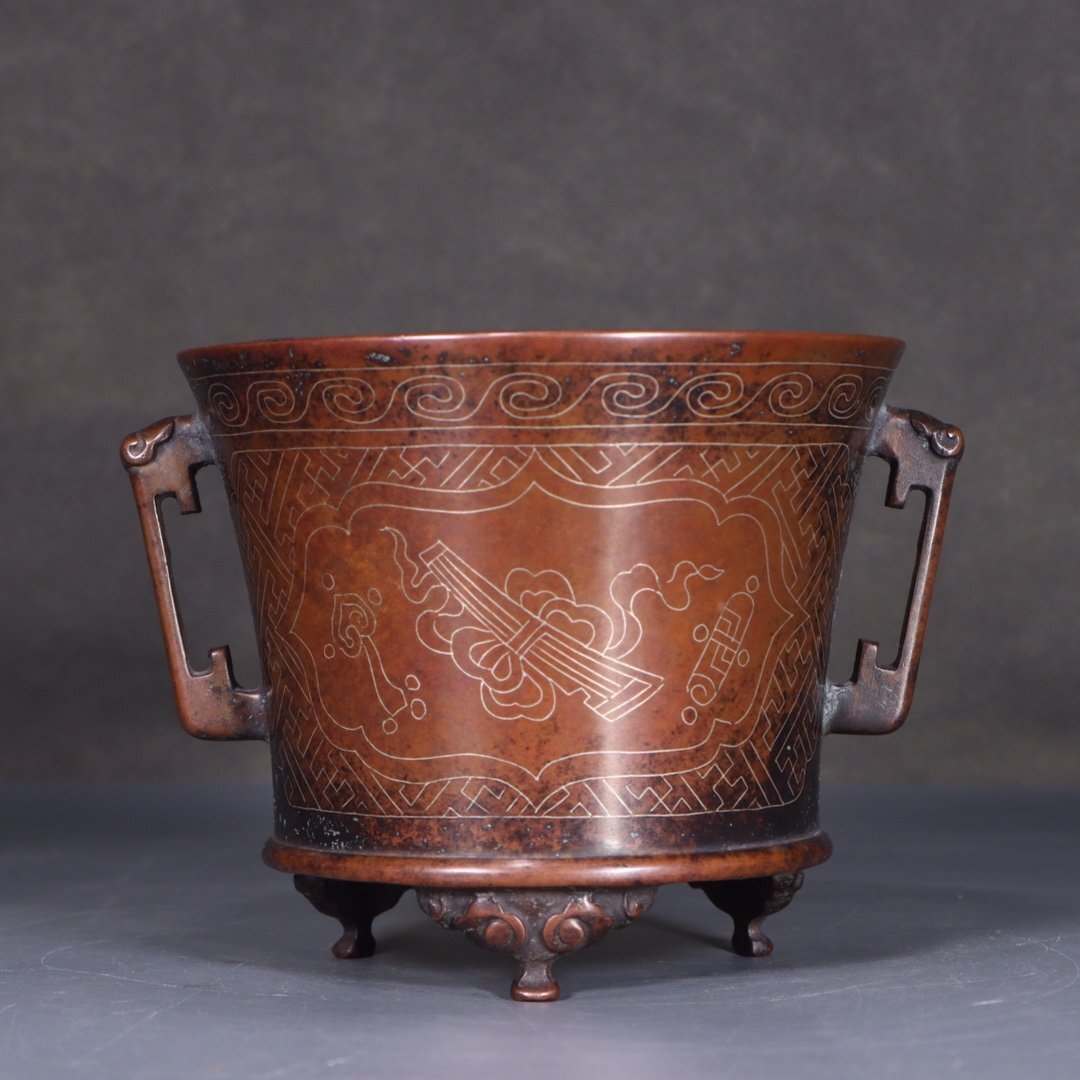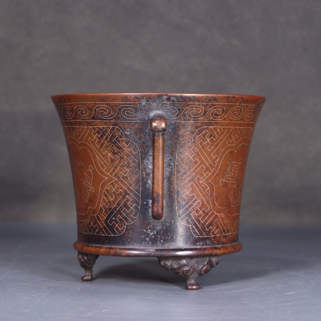【安】明時代 石叟銘 銅胎 錯銀絲 八宝紋龍耳香炉 極細工 古置物 古擺件 中国古美術 時代物 古董品 352 サイズ(約寸) |
