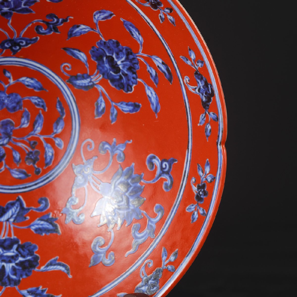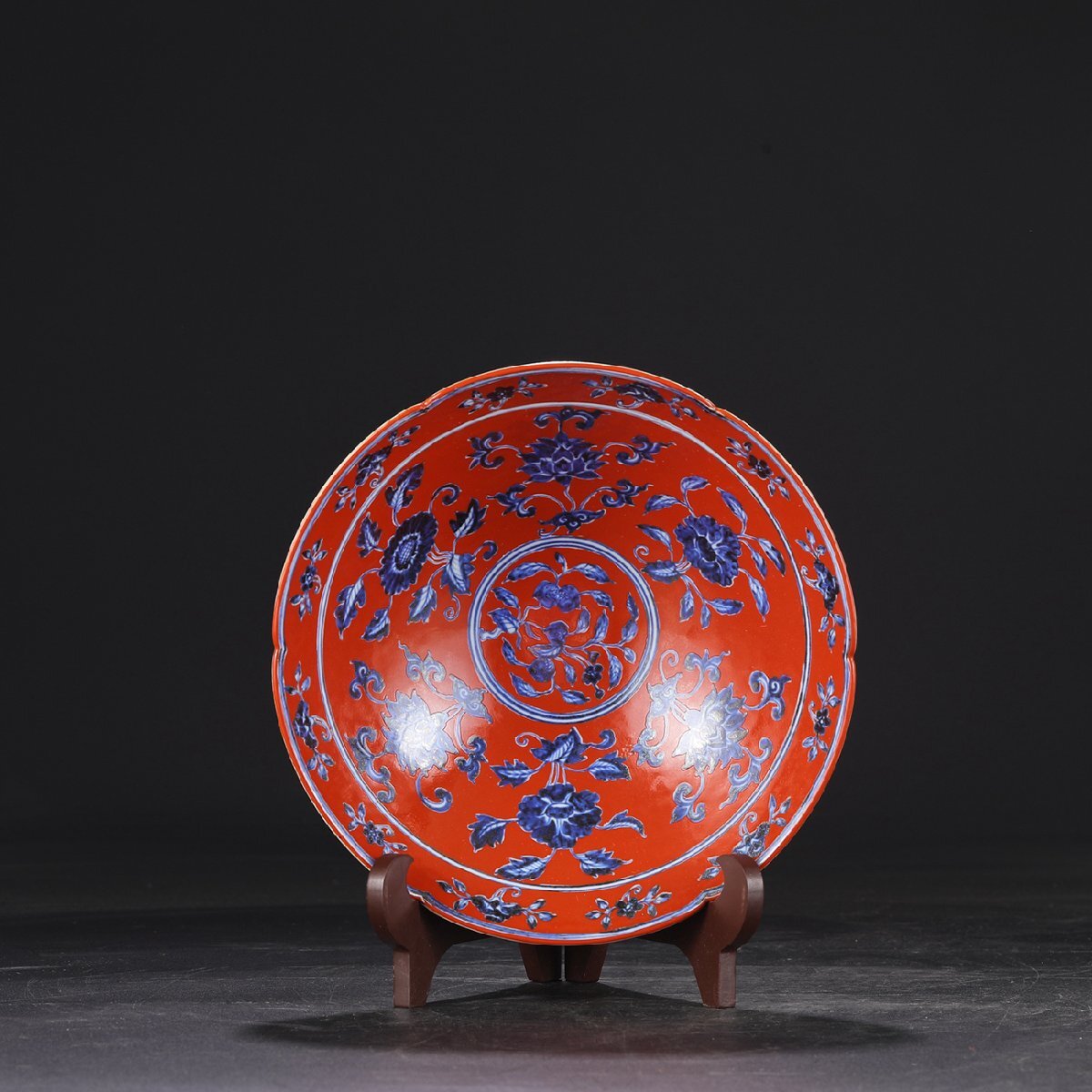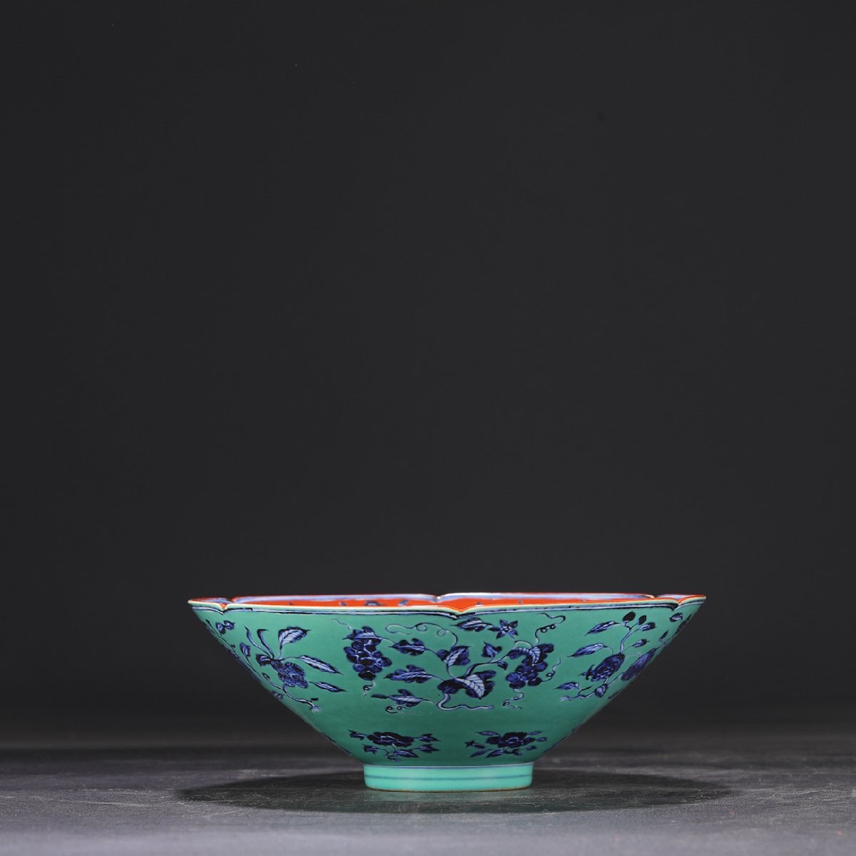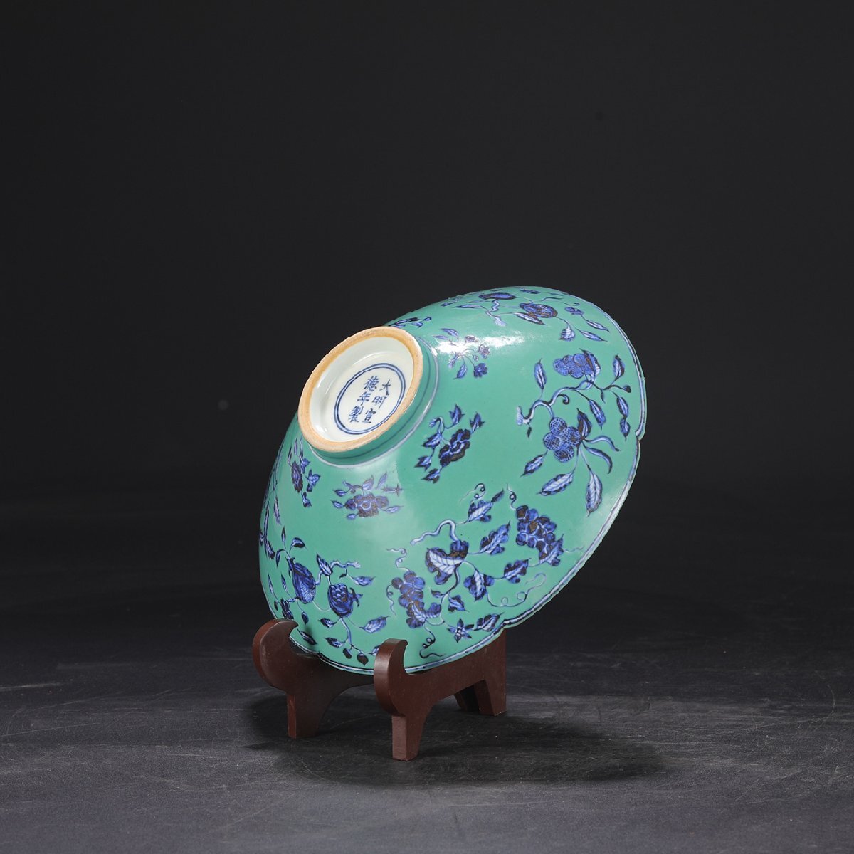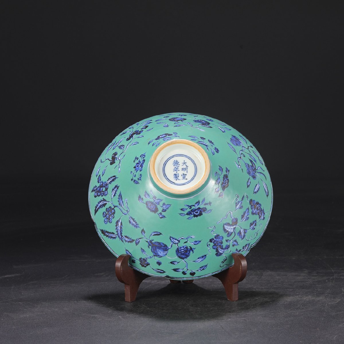 【安】明時代 大明宣徳年製 孔雀緑紅地青花折枝花果紋斗笠碗 共箱 唐瓷 古陶瓷 中国古美術 古董品 395 サイズ(約寸) |