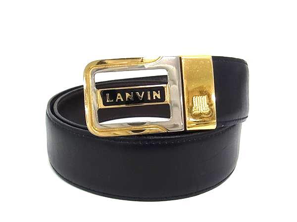 ■美品■ LANVIN ランバン レザー ゴールド金具 ベルト 表記サイズ95 ビジネス 紳士 メンズ ブラック系×ゴールド系 DL1805