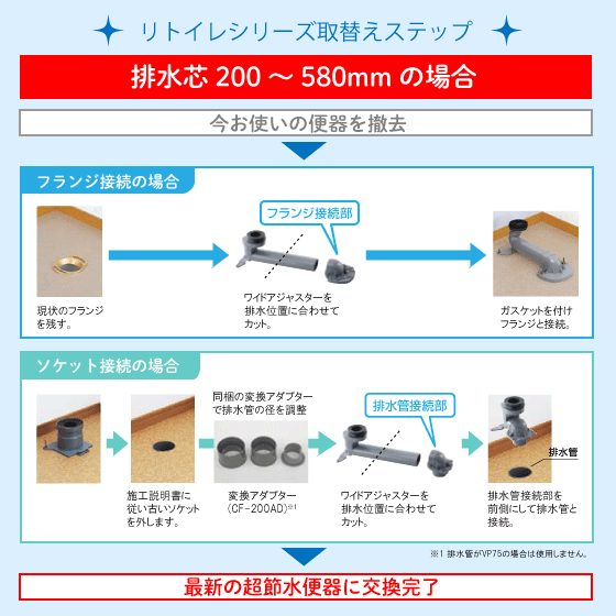 ・ ワイドアジャスター搭載で、市場のほとんどの便器から交換可能です。