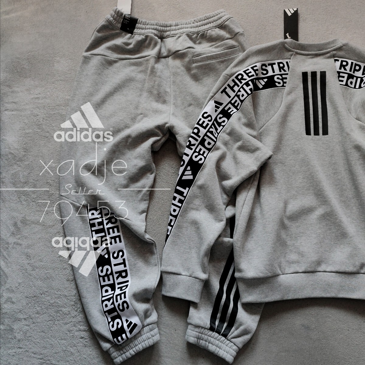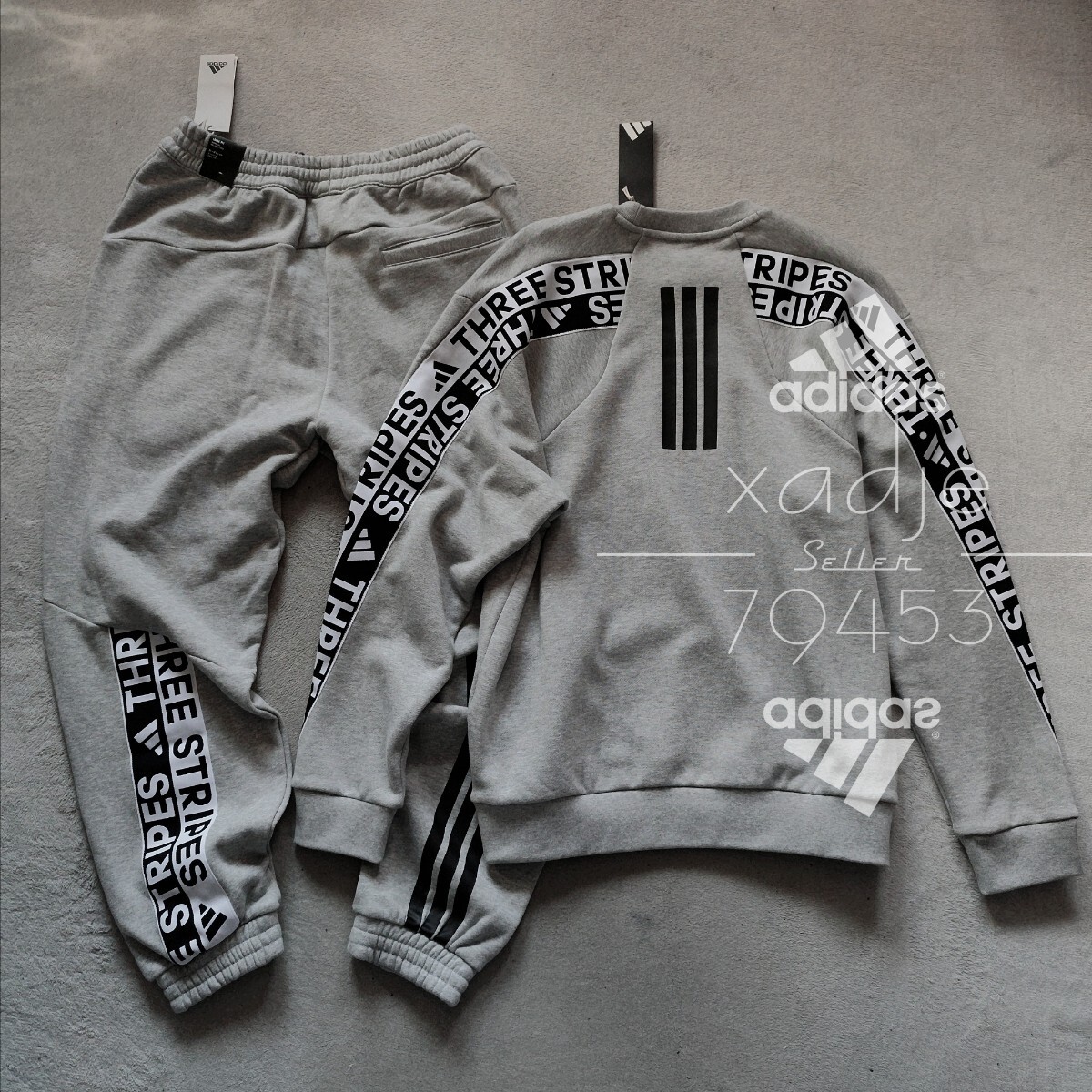 新品 正規品 adidas アディダス 上下セット スウェット トレーナー パンツ セットアップ 灰 グレー 黒 厚手 最新モデル 定価15950円 2XL