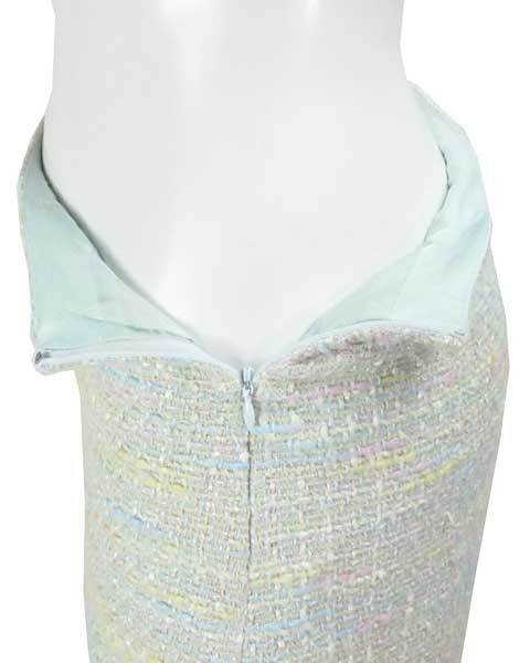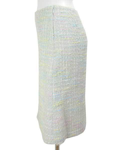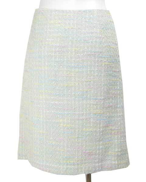 | 淡いお色がたくさん入った上品なツィードスカート。きちんと感と華やかさがあり、華やかなお席やあらたまったシーンなどで活躍してくれます。生地感や仕立てなど上質感があります。 |