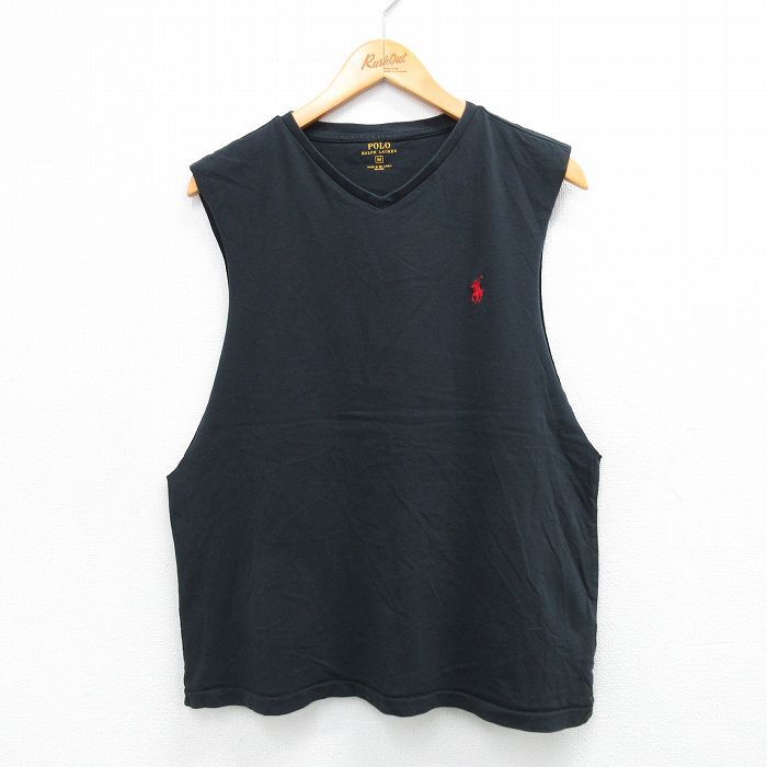 【商品名】 L★古着 ラルフローレン ノースリーブ ブランド Tシャツ メンズ ワンポイントロゴ コットン Vネック 黒