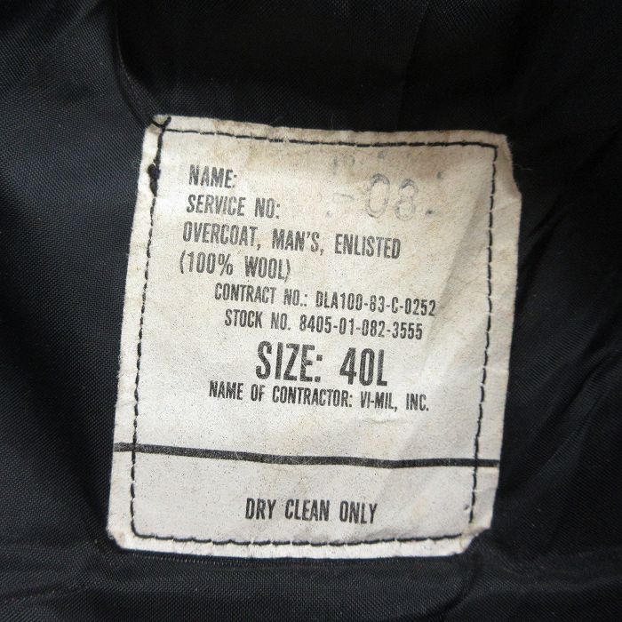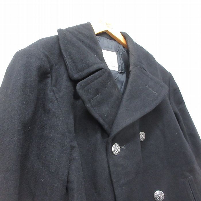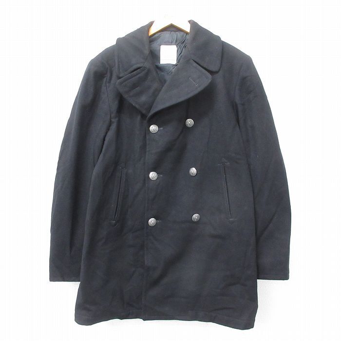 【商品名】 L★古着 長袖 ミリタリー ウール オーバー コート メンズ 80年代 80s ロング丈 USA製 黒