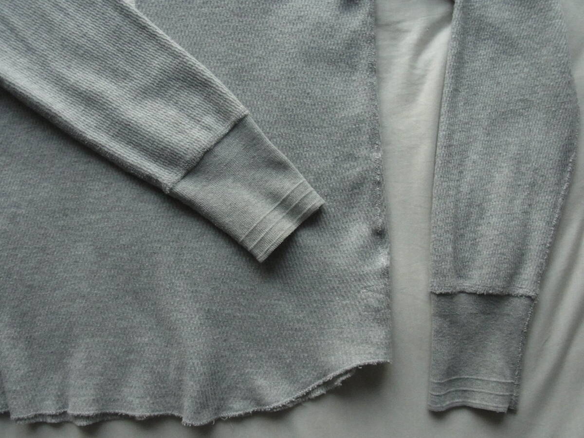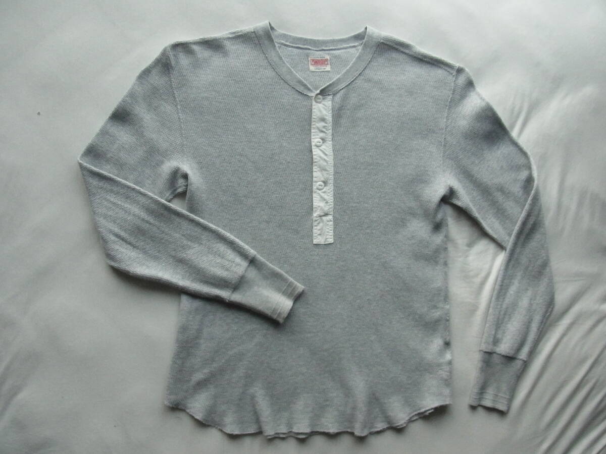 ヘルスニットのハニカムワッフル素材で長袖のヘンリーネックTシャツになります。USEDで着用感は御座いますが、特に目立ったダメージ等は御座いません。