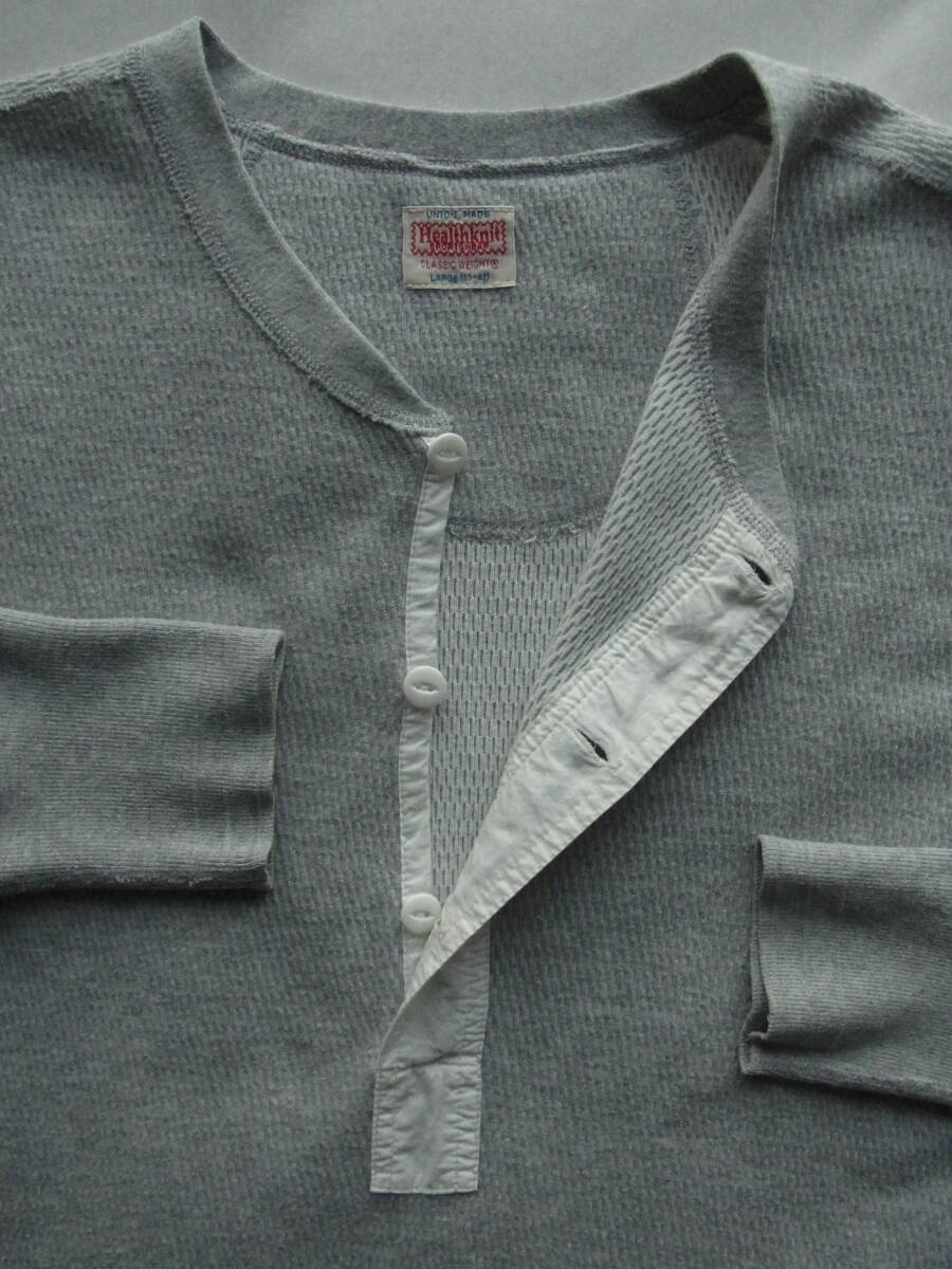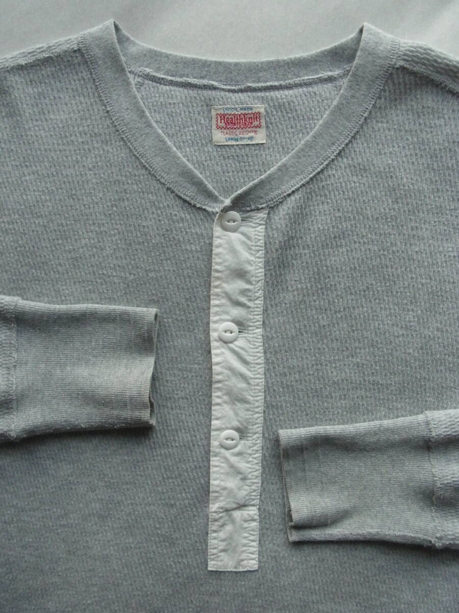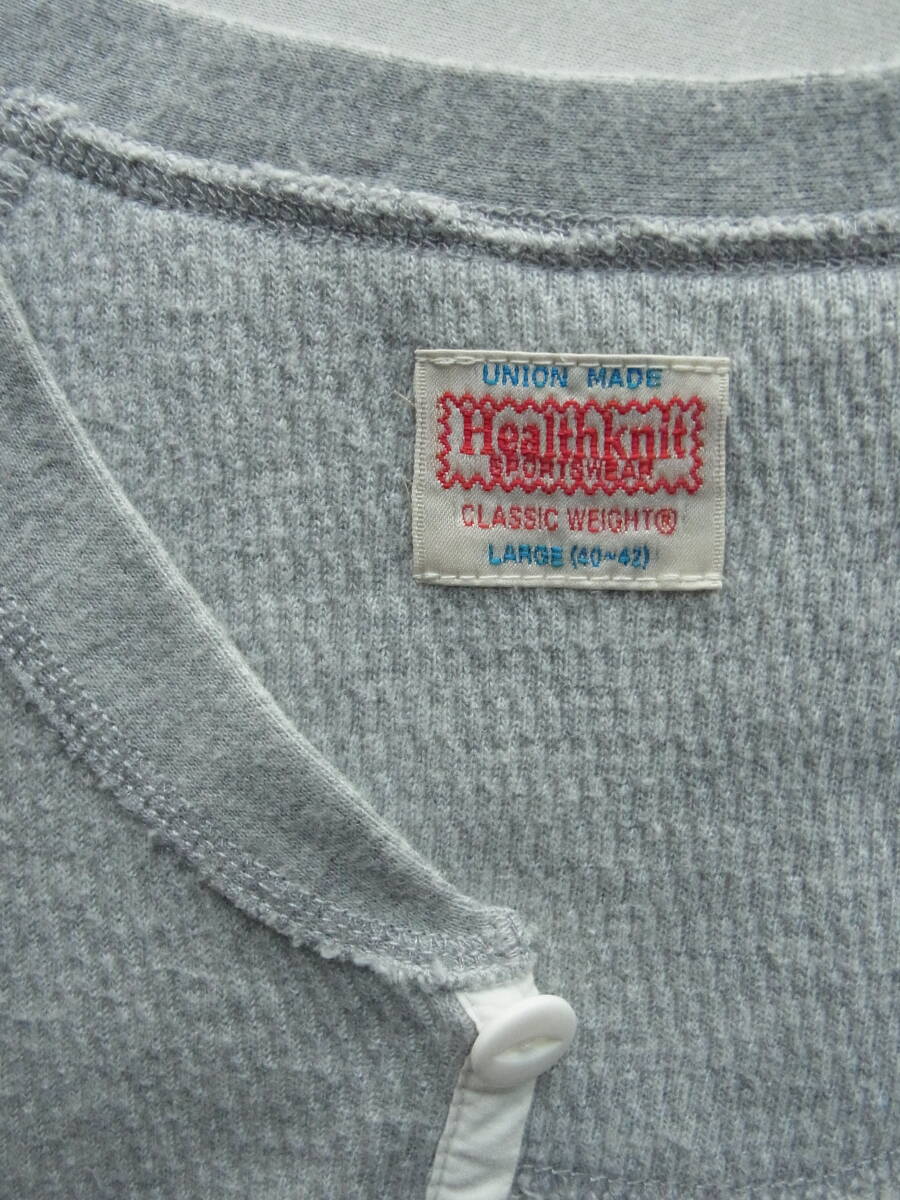 Healthknit  ヘルスニット ハニカムワッフル ヘンリーネック 長袖Tシャツ サイズ LARGE(40-42) 杢ライトグレー