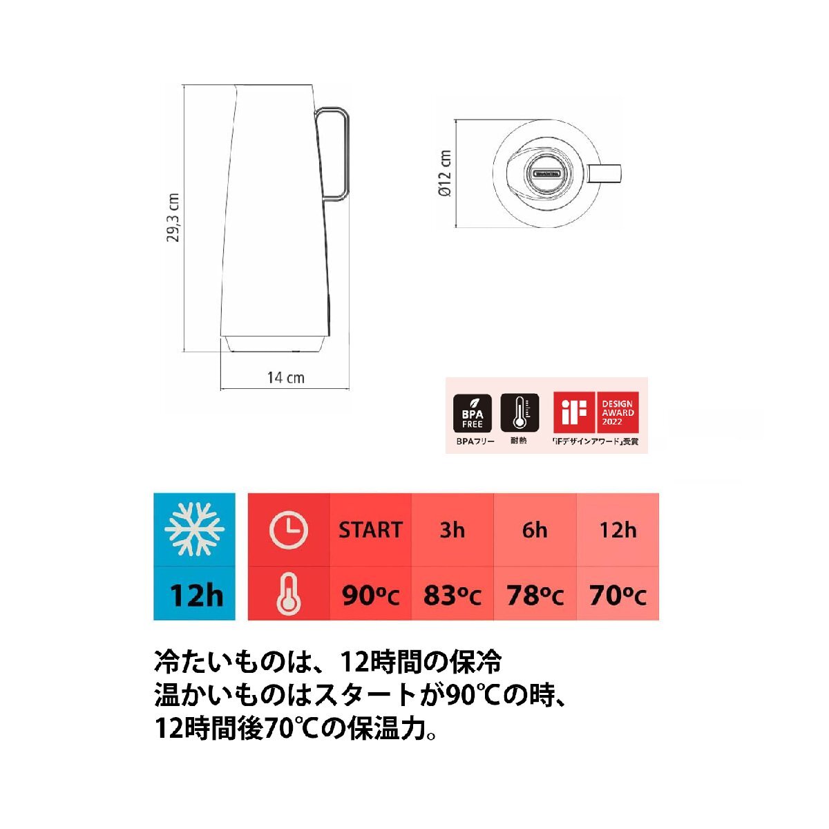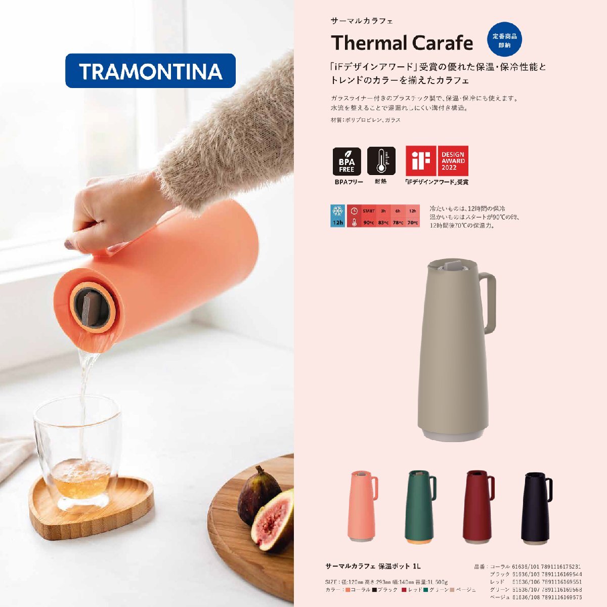 「iFデザインアワード」受賞の優れた保温・保冷性能とトレンドのカラーを揃えたカラフェ。