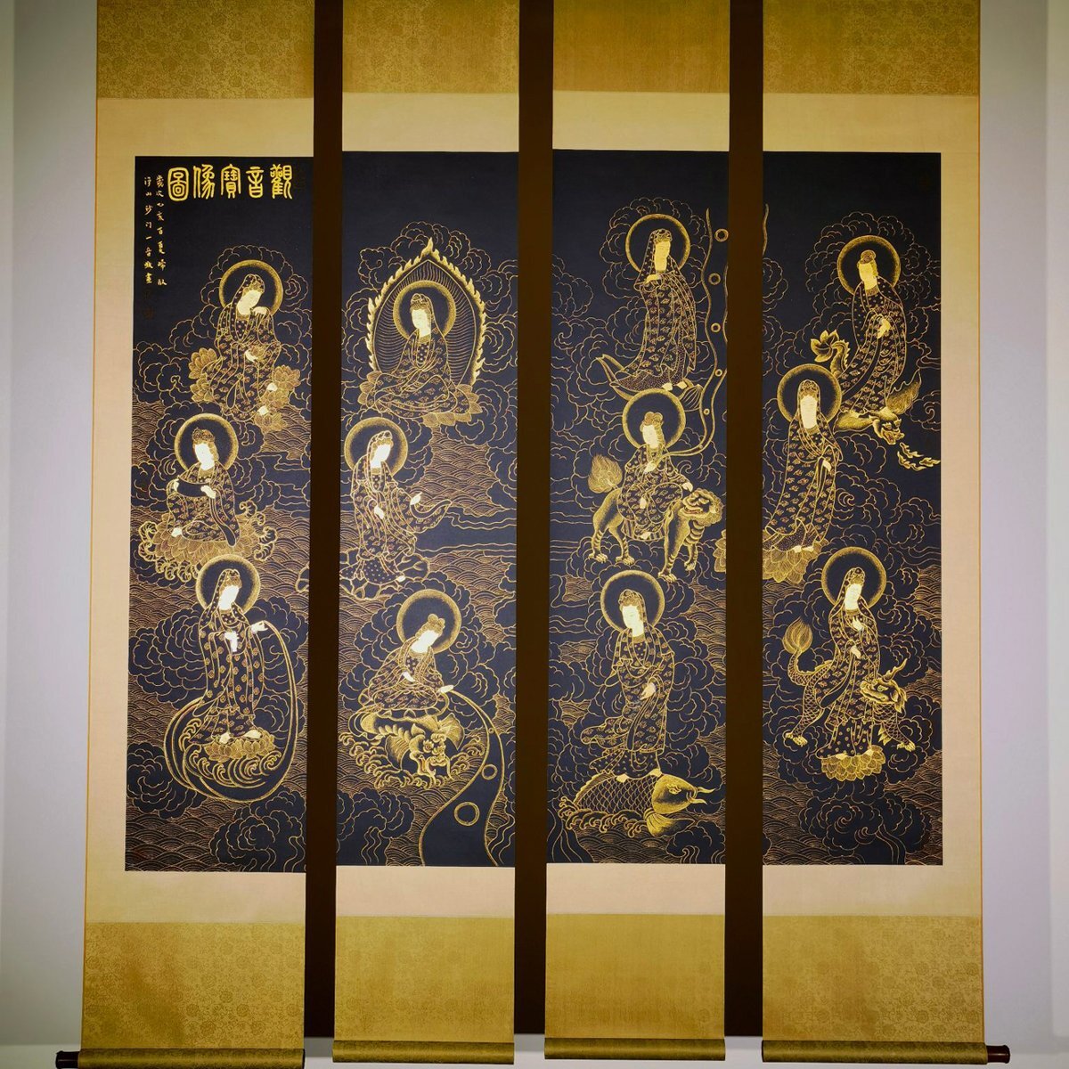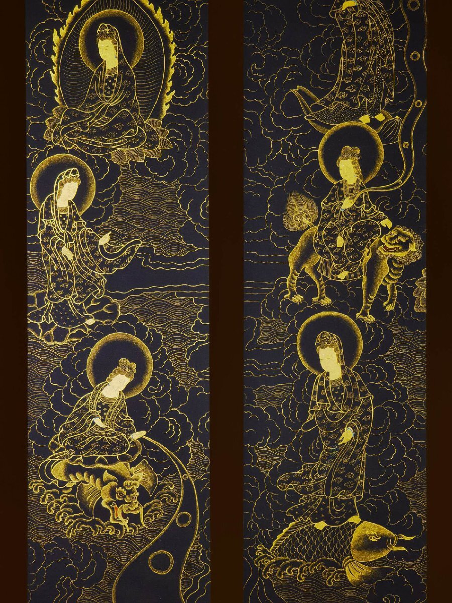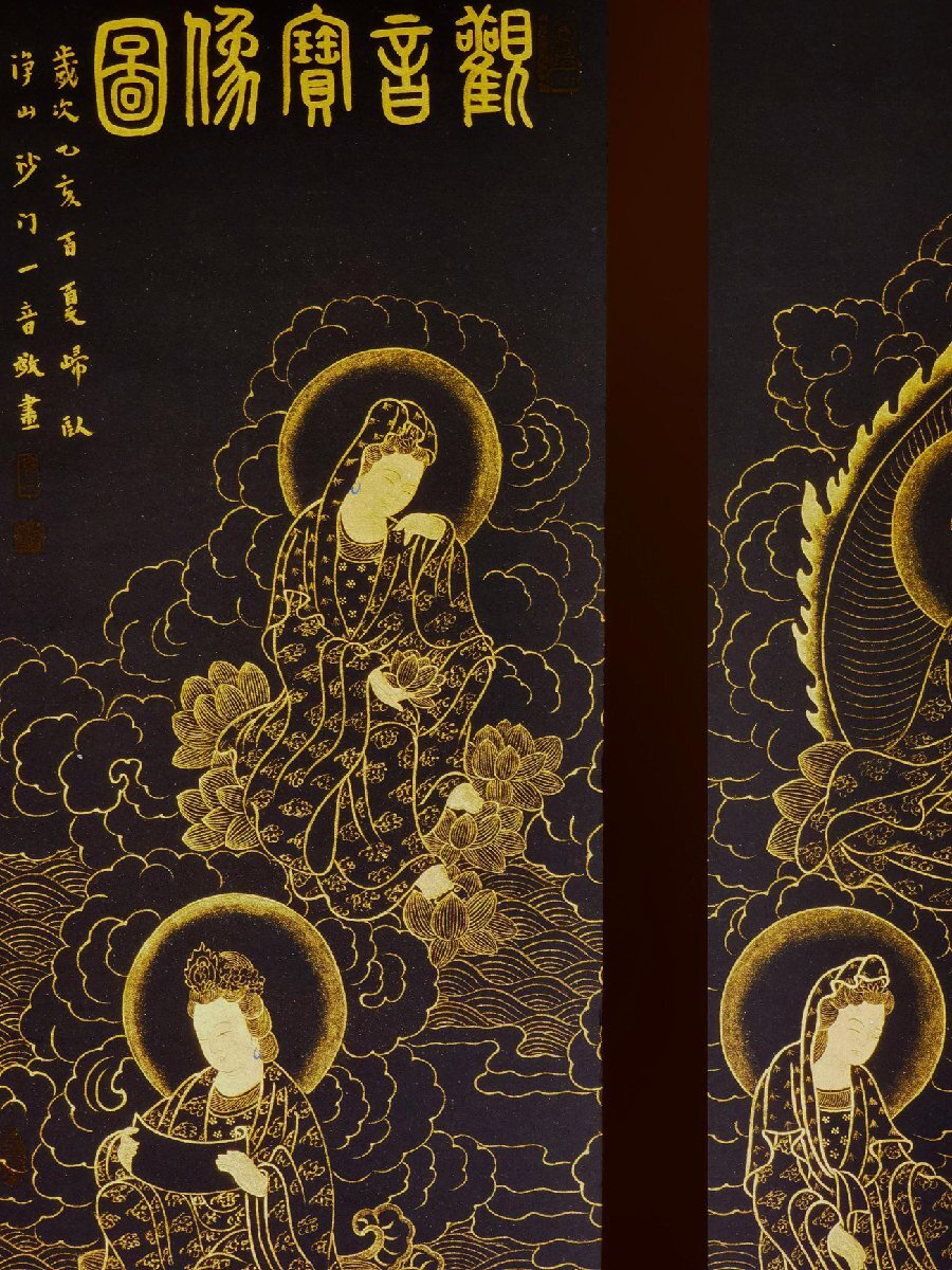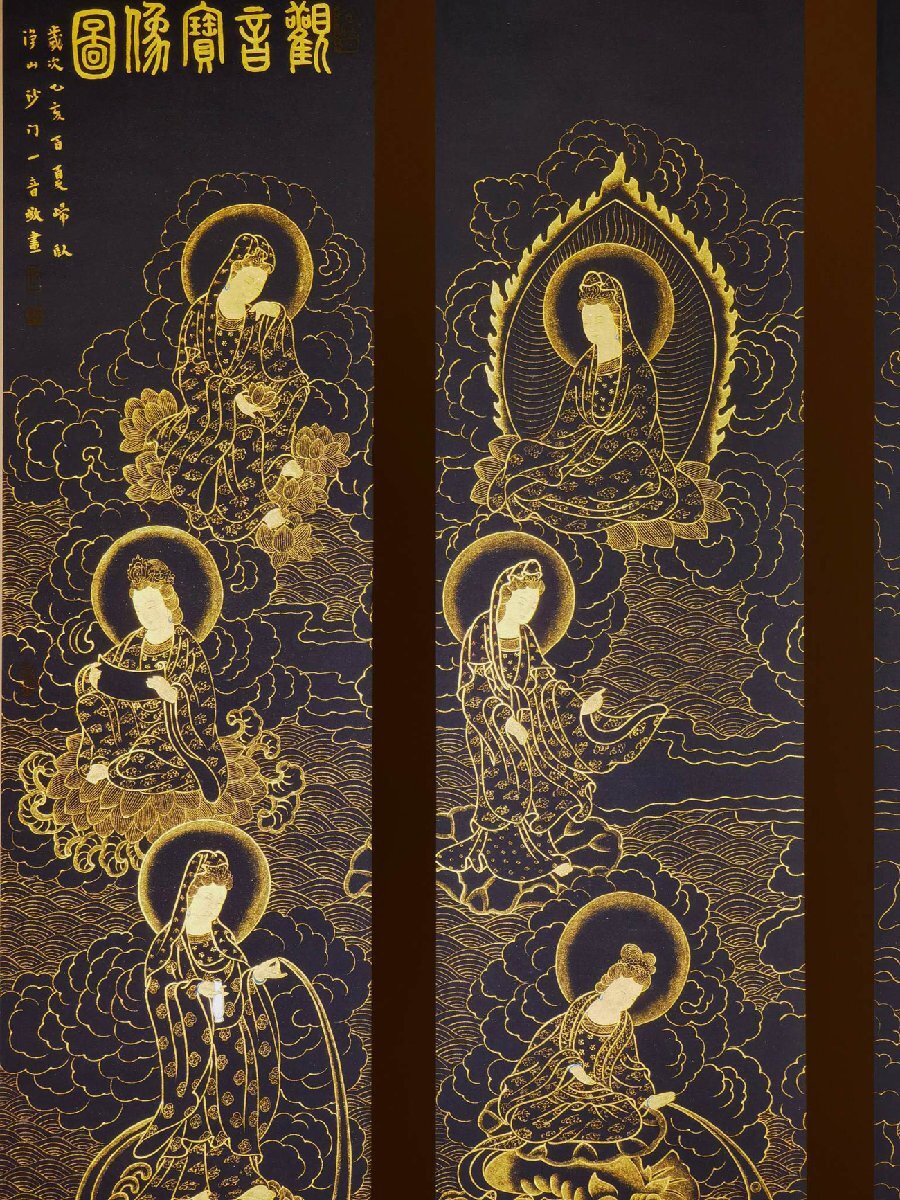 【安】中国近時代画家「弘一書」 紙本「金粉観音宝像図通景四条屏」掛軸 中国画 墨寶妙品 中国書道 古美術 367 サイズ(約寸) |