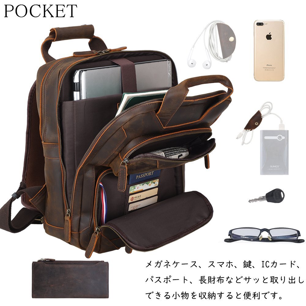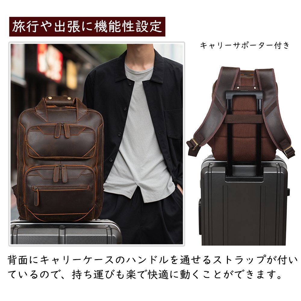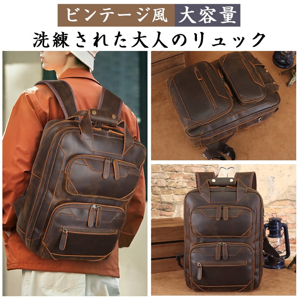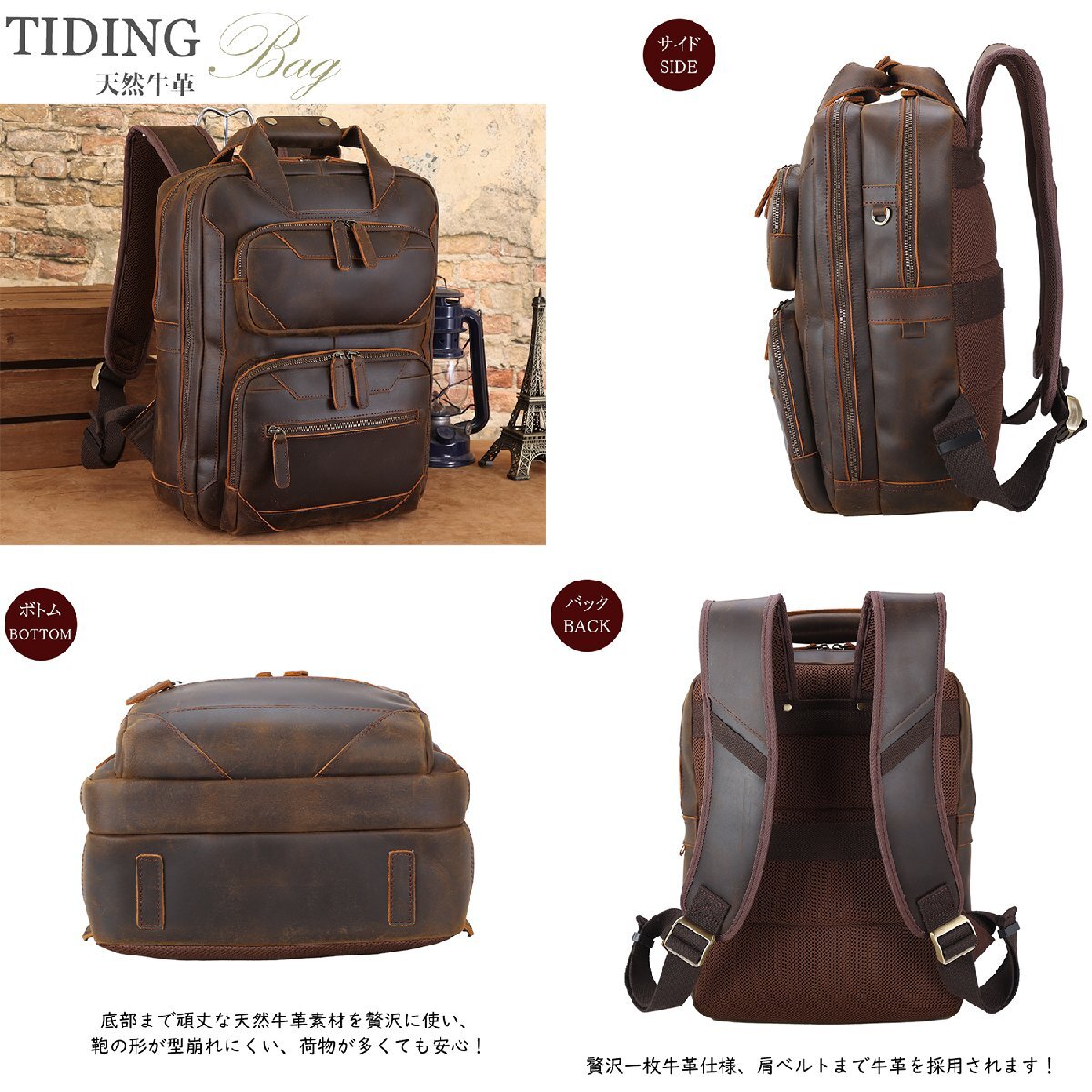 TIDING サイボー線条感 厚手牛革 リュックサック 本革 メンズ バックパック ディパック 旅行 アウトドア ブラウン