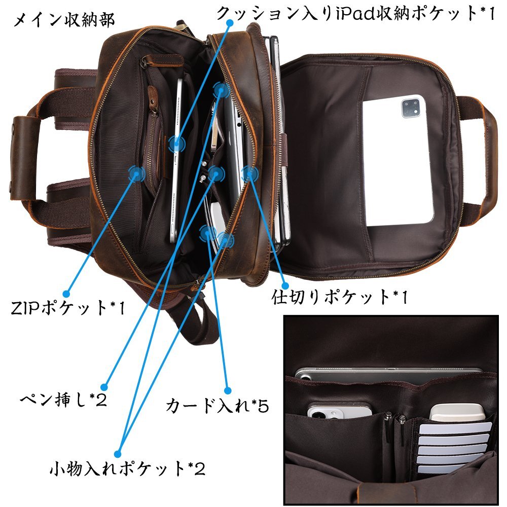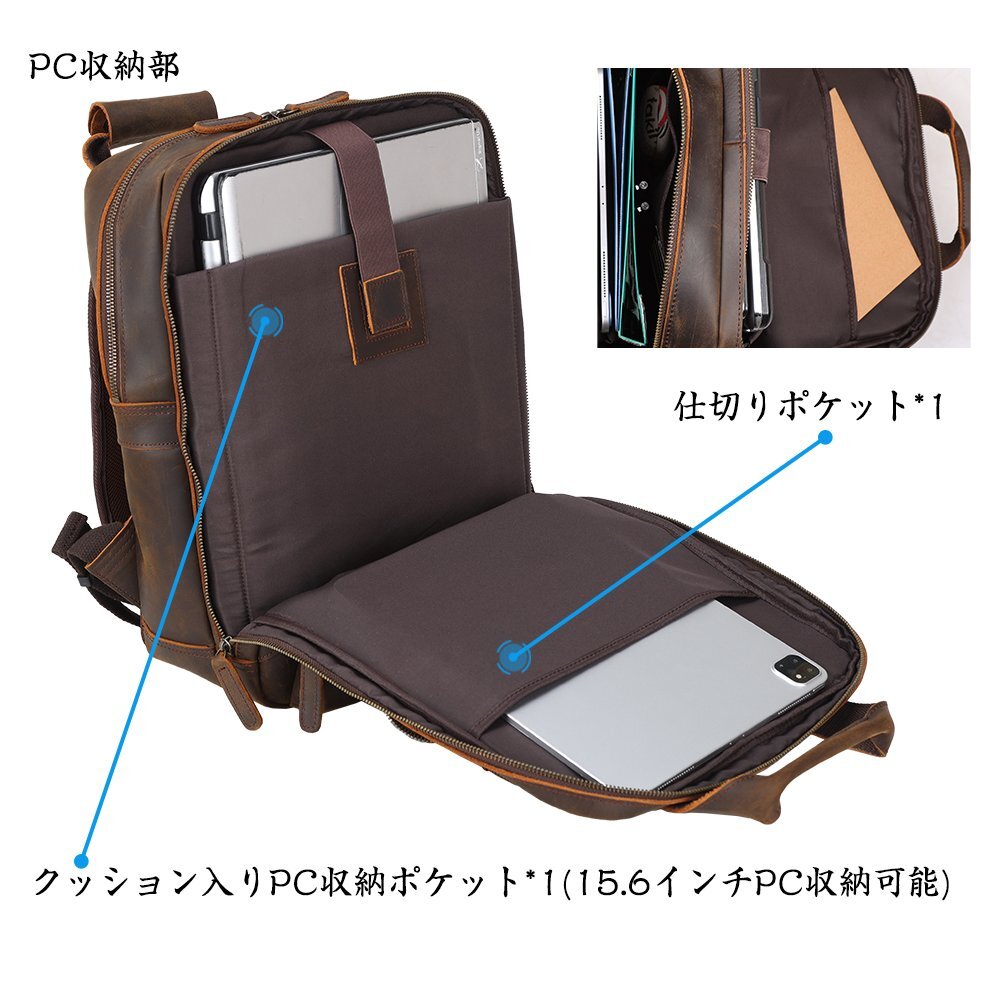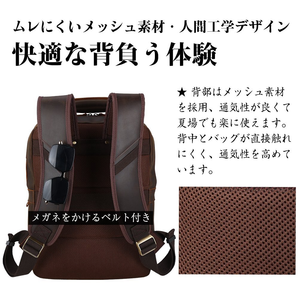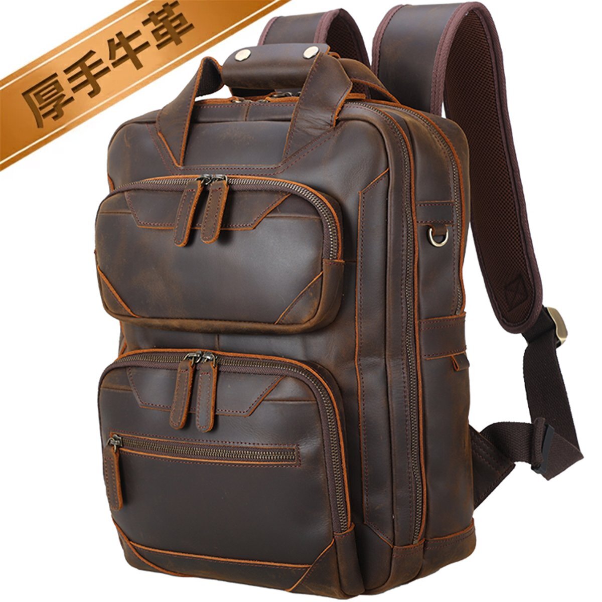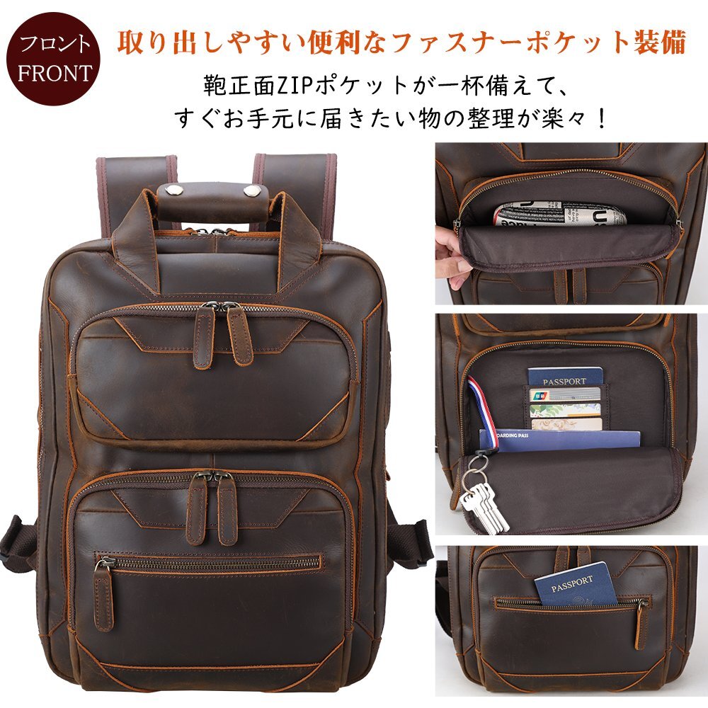 TIDING サイボー線条感 厚手牛革 リュックサック 本革 メンズ バックパック ディパック 旅行 アウトドア ブラウン