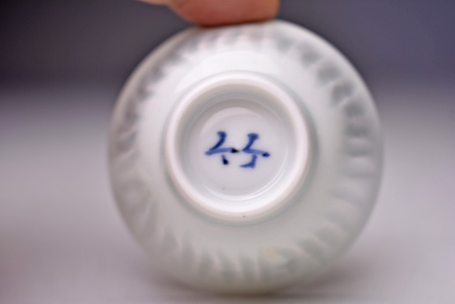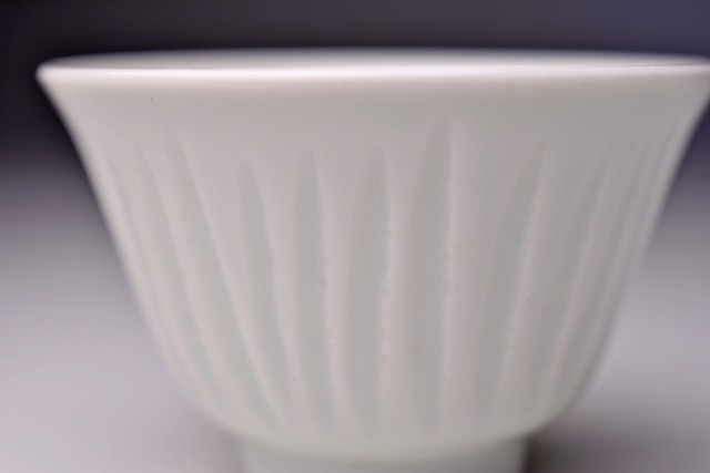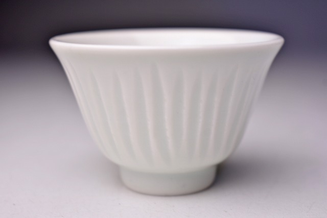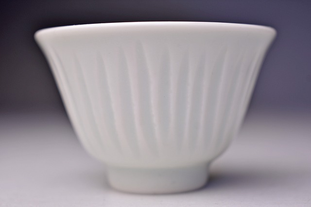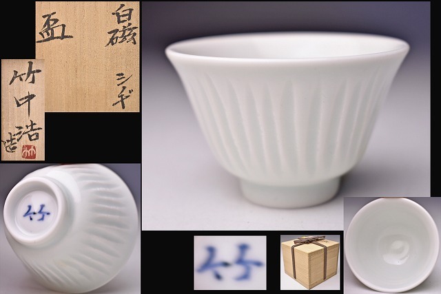 竹中浩 ★ 白磁 ぐい呑 ★ 共箱 ★ シノギ ★ 酒器 ★ 人間国宝 近藤悠三 師事 ★ 京焼 ★ 清水焼 ★ 手に馴染み小振りで上品な逸品 ★