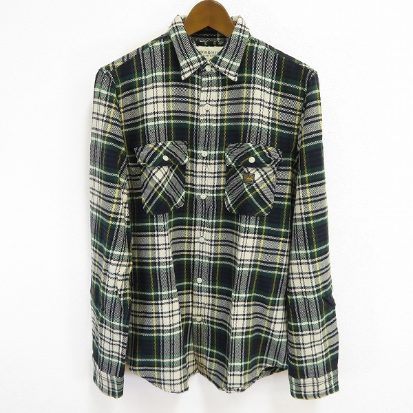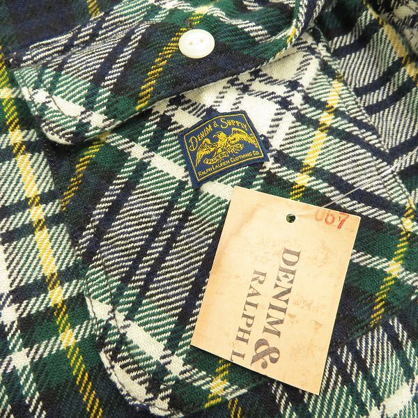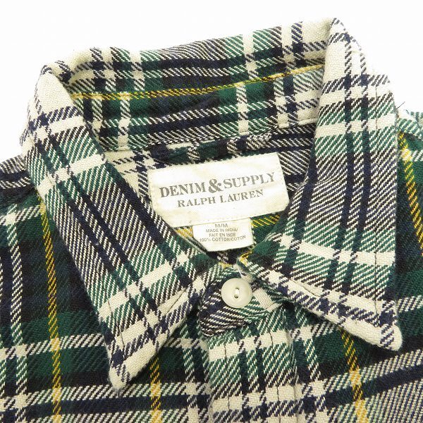 #wnc ラルフローレン RalphLauren デニム&サプライ 長袖シャツ M 緑 紺 オフホワイト チェック 厚手 メンズ [931887] k01