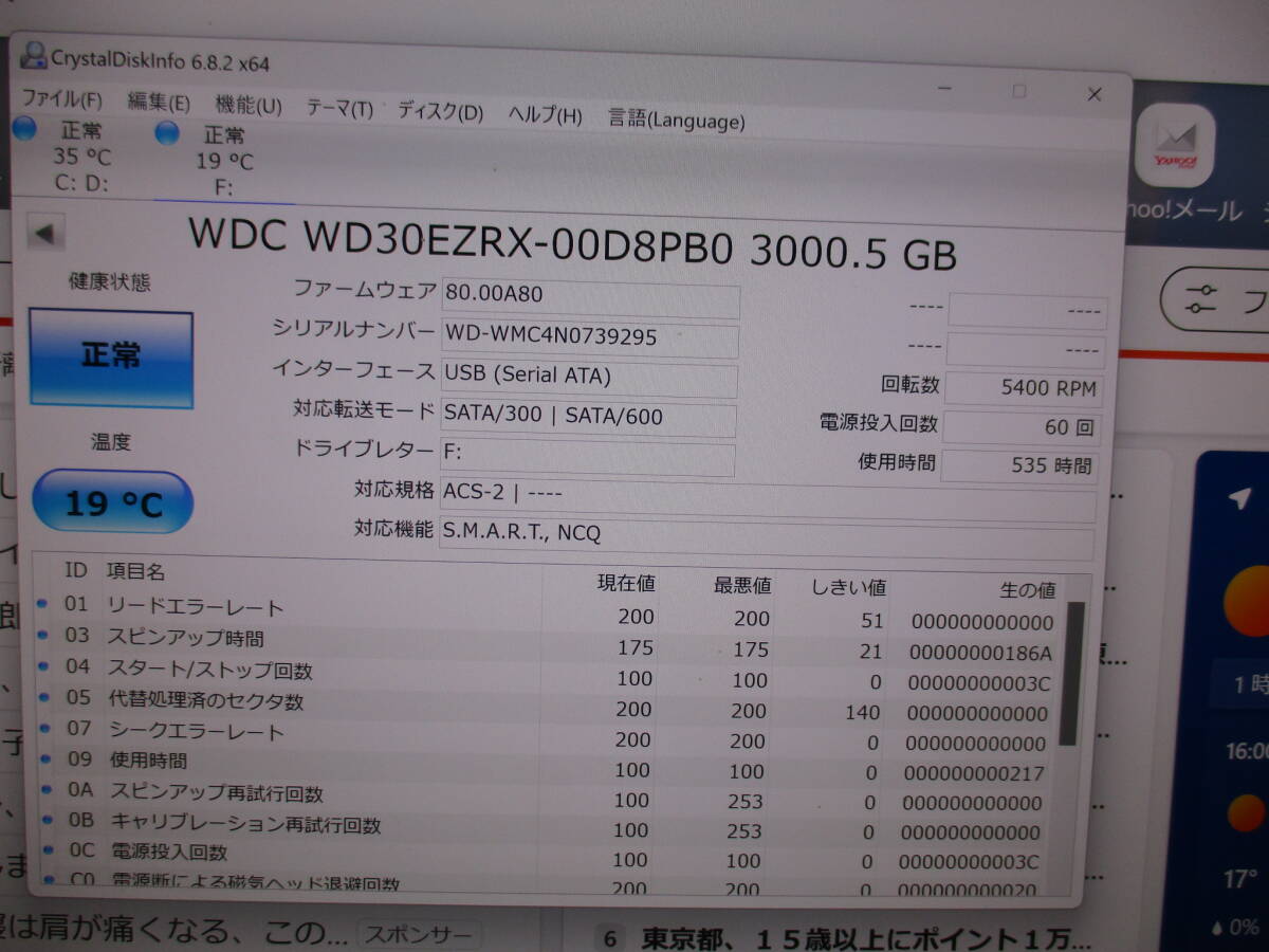 CrystalDiskInfoにてチェック済み,正常でした。