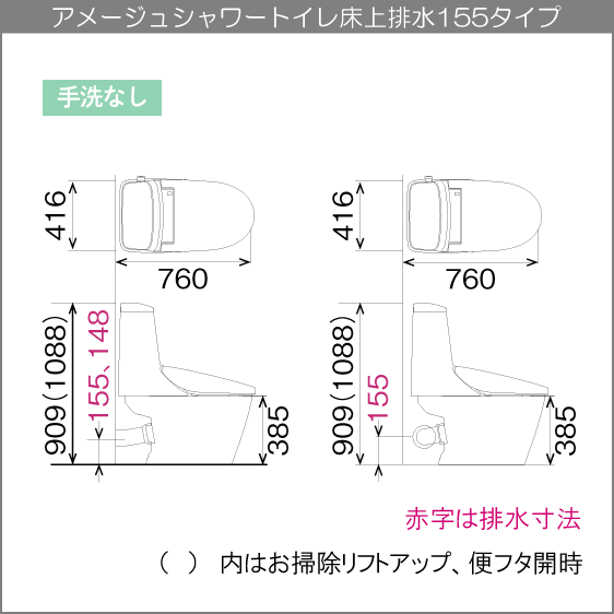 『壁排水(床上排水)』仕様、排水芯(高さ):155mmです。