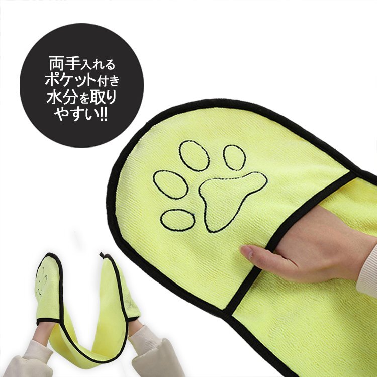 両手が入るペットのあらゆる部位を包み込み、どんどん水分を吸収していきます。