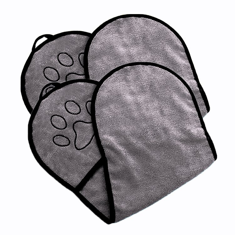 ◆ペット用タオル2枚セット 高吸水性 速乾 吸水 ソフトタオル マイクロファイバー ポケット付き 体拭き 犬タオル 猫タオル 使いやすい 【グレー2枚】PTTA02S