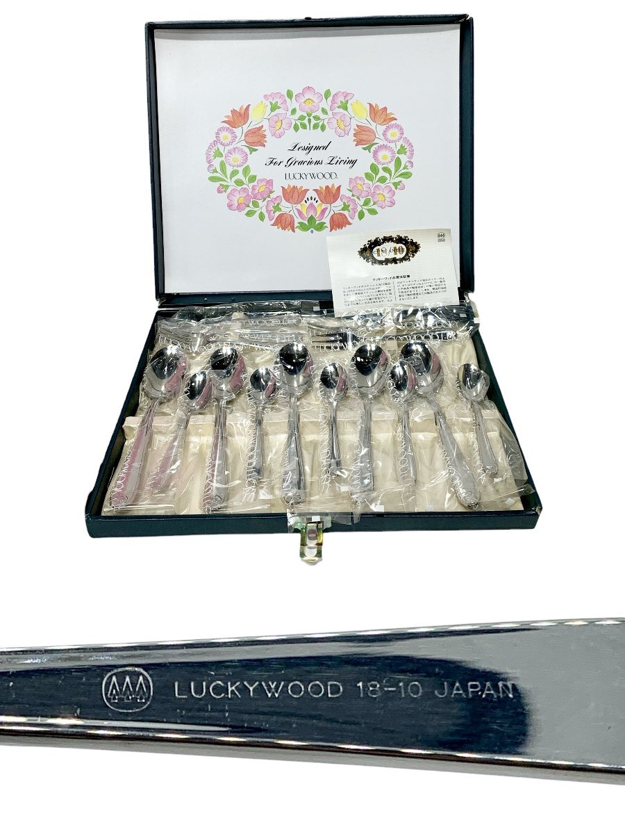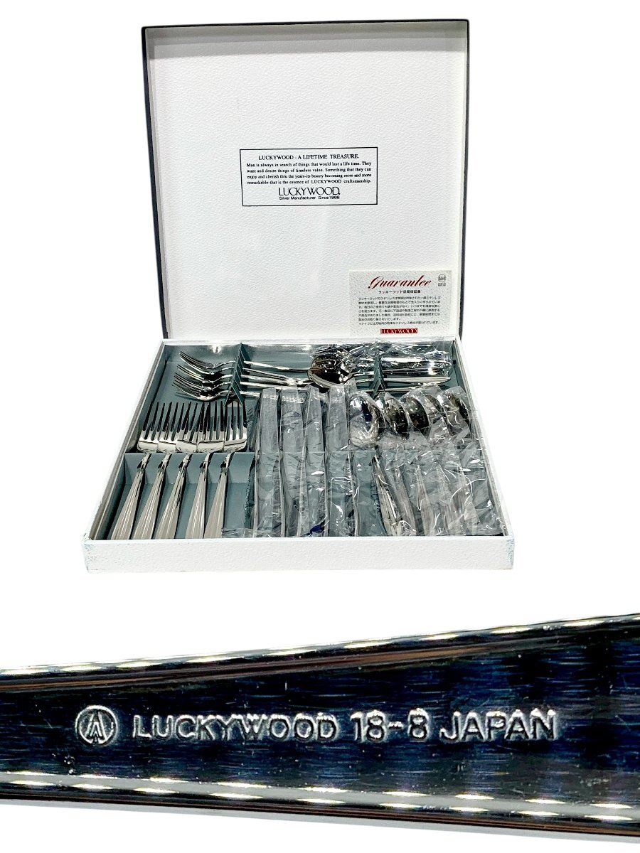 LUCKY WOOD ラッキーウッド カトラリーセット SHINKO/KOBA フォーク スプーン ナイフ 箱付き 4点 おまとめ 中古品 120サイズ 蘇さ(BBY2295)