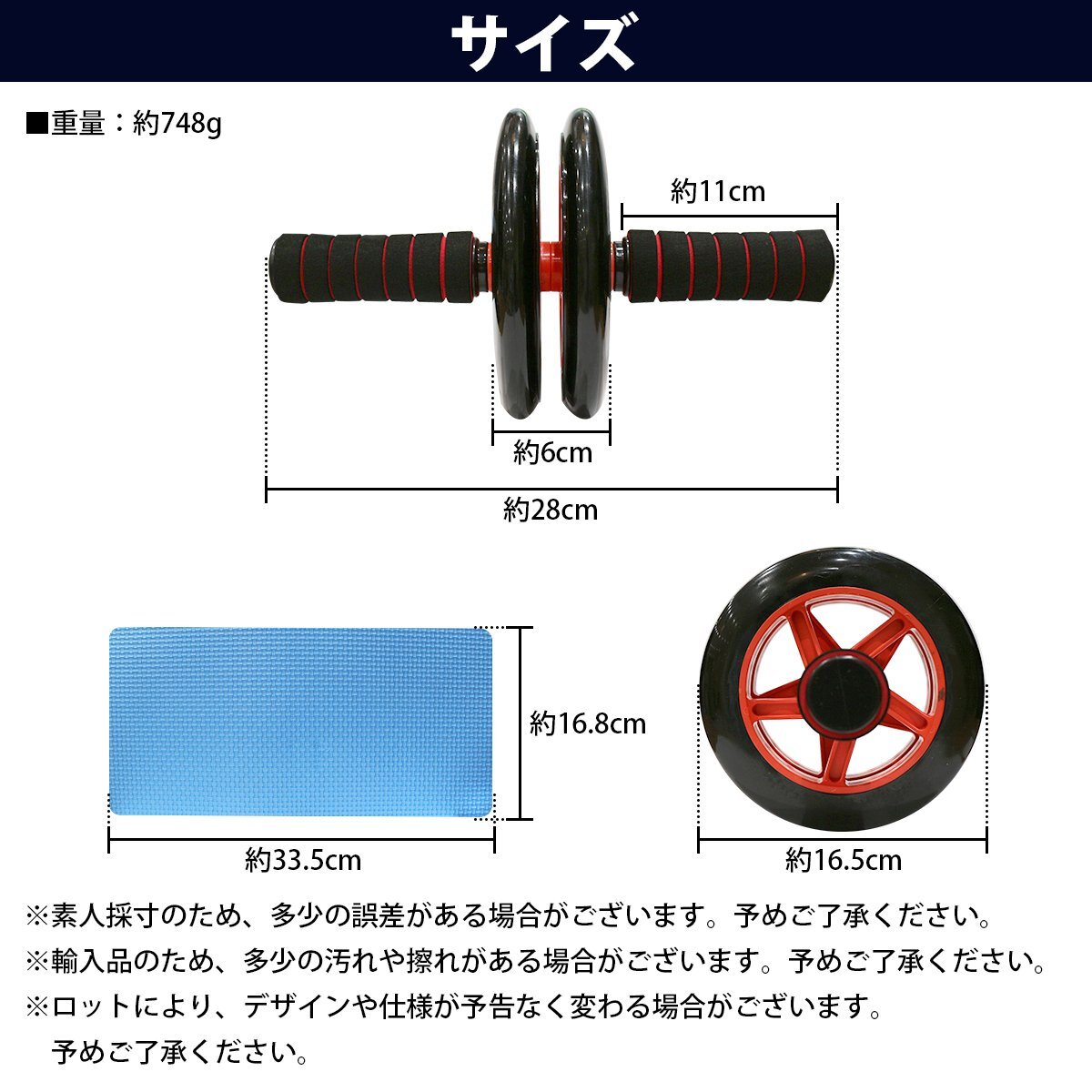 『直径16.5cm』アブホイール エクササイズウィル 腹筋ローラー エクササイズローラー 膝専用マット付 レッド ダブルホイール仕様