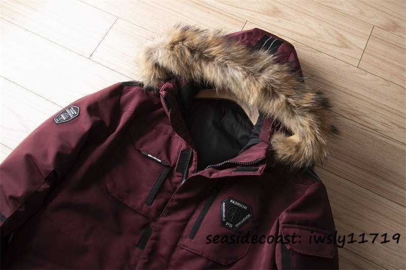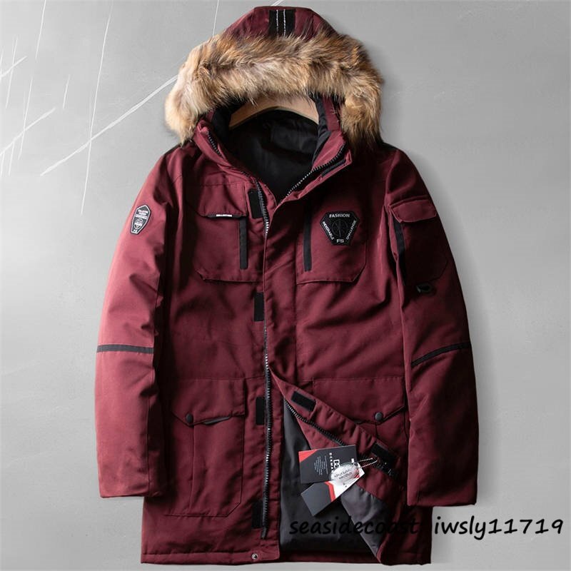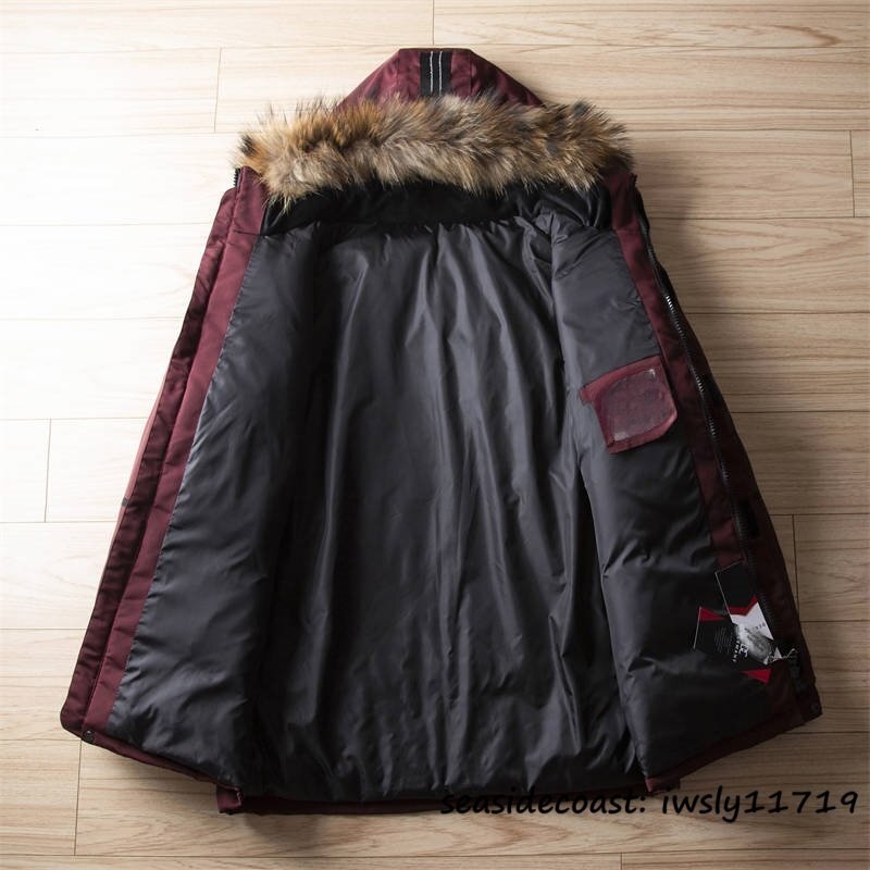 秋冬新品*ダウンジャケット メンズ ダウンコート フード付き 取り外し可 ミドル丈 厚手 防風防寒 暖かい アウター アウトドア レッド M