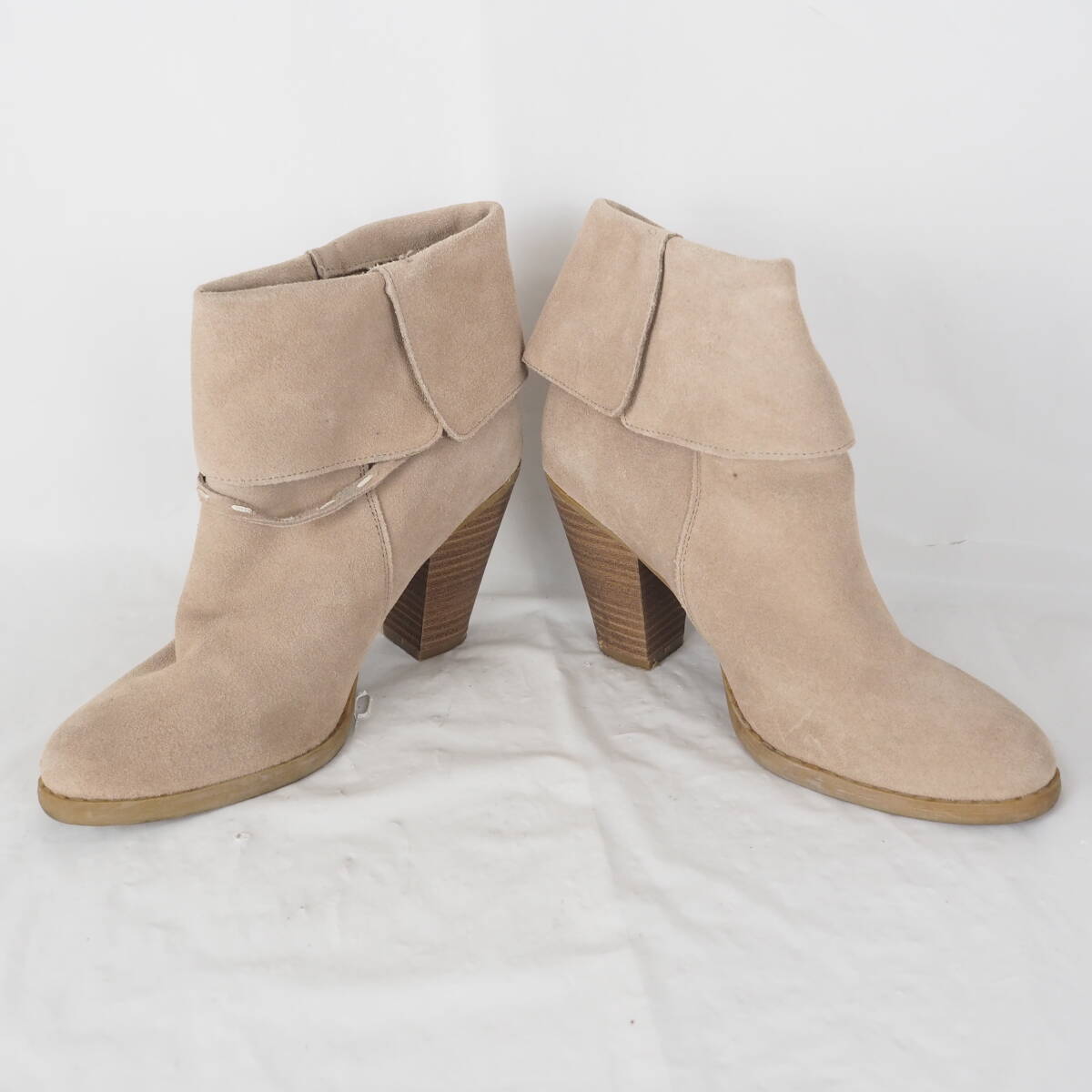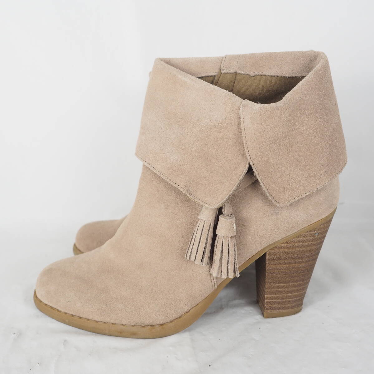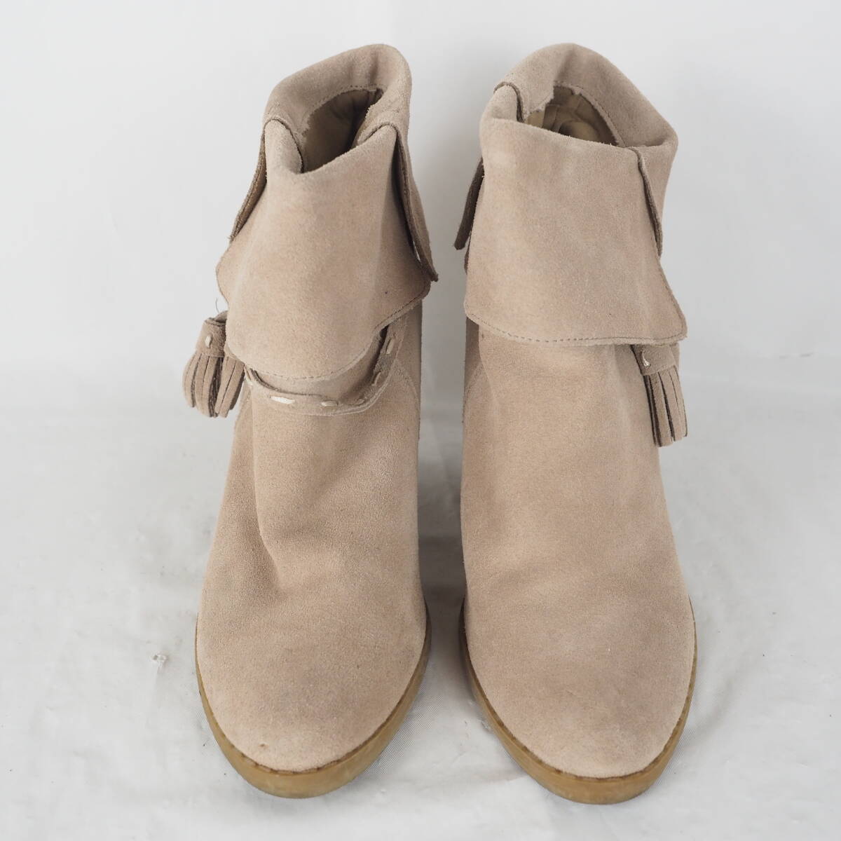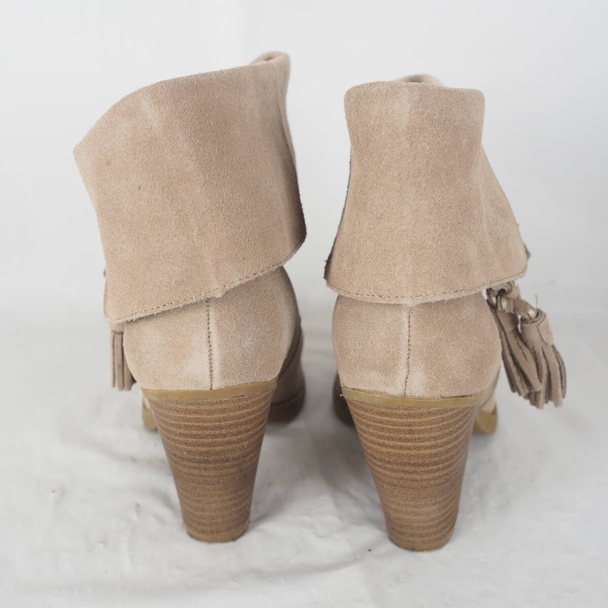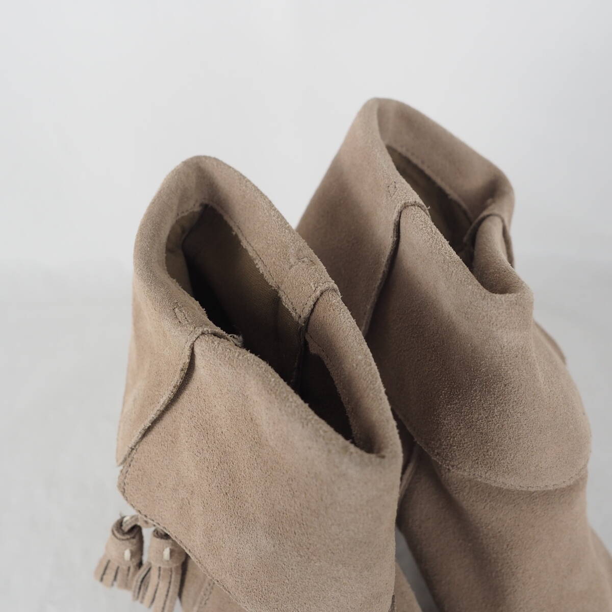 | ページをご覧いただきありがとうございます^^靴、ブーツを中心に出品しております。 やわらかなスエード調素材と折り返しデザインが、足元にこなれた雰囲気を添えてくれるショートブーツです。 明るめのベージュカラーが優しく映え、カジュアルからフェミニンまで幅広いコーディネートに馴染みます。 程よいヒール高で安定感があり、デイリーからお出かけまで快適にお使いいただける一足です。 ☆商品詳細☆