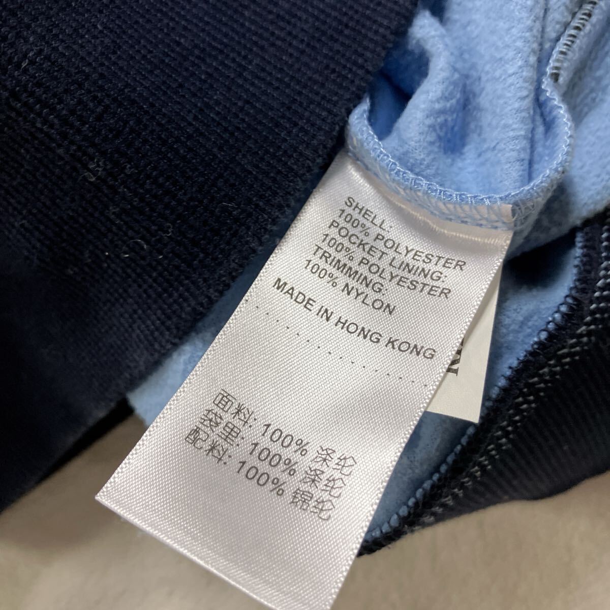 タグ表記より、ポリエステル100%素材/香港製であることが確認できます。