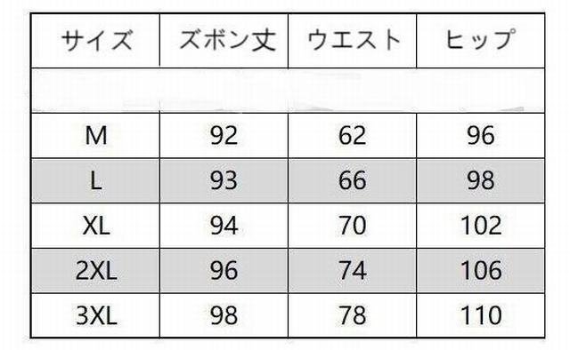 【素材】:ポリエステル、その他サイズ(cm) 【S】パンツ丈90、ウエスト幅 33、ヒップ幅44、裾幅11 【M】パンツ丈92、ウエスト幅 34、ヒップ幅46、裾幅13 【L】パンツ丈94、ウエスト幅 35、ヒップ幅48、裾幅15 【XL】パンツ丈96、ウエスト幅 36、ヒップ幅50、裾幅17 注意点 ●色合いはモニター環境により若干の誤差が出ます。 ●サイズは平置きサイズとなりますので測り方により誤差が出る場合がございます。 ●入荷・生産時期により、色、サイズ、素材など多少異なる場合がございます。 ●本製品は生産過程におきまして、生地を織る際の糸の継ぎ目や多少のほつれが生じることがありますが、 予めご了承ください。 ●お手頃価格での提供を目指しているため、簡易包装となっており、保管・梱包時にシワが伴う場合がございます。 気になる場合はスチームアイロンをおかけすることをおすすめいたします。
