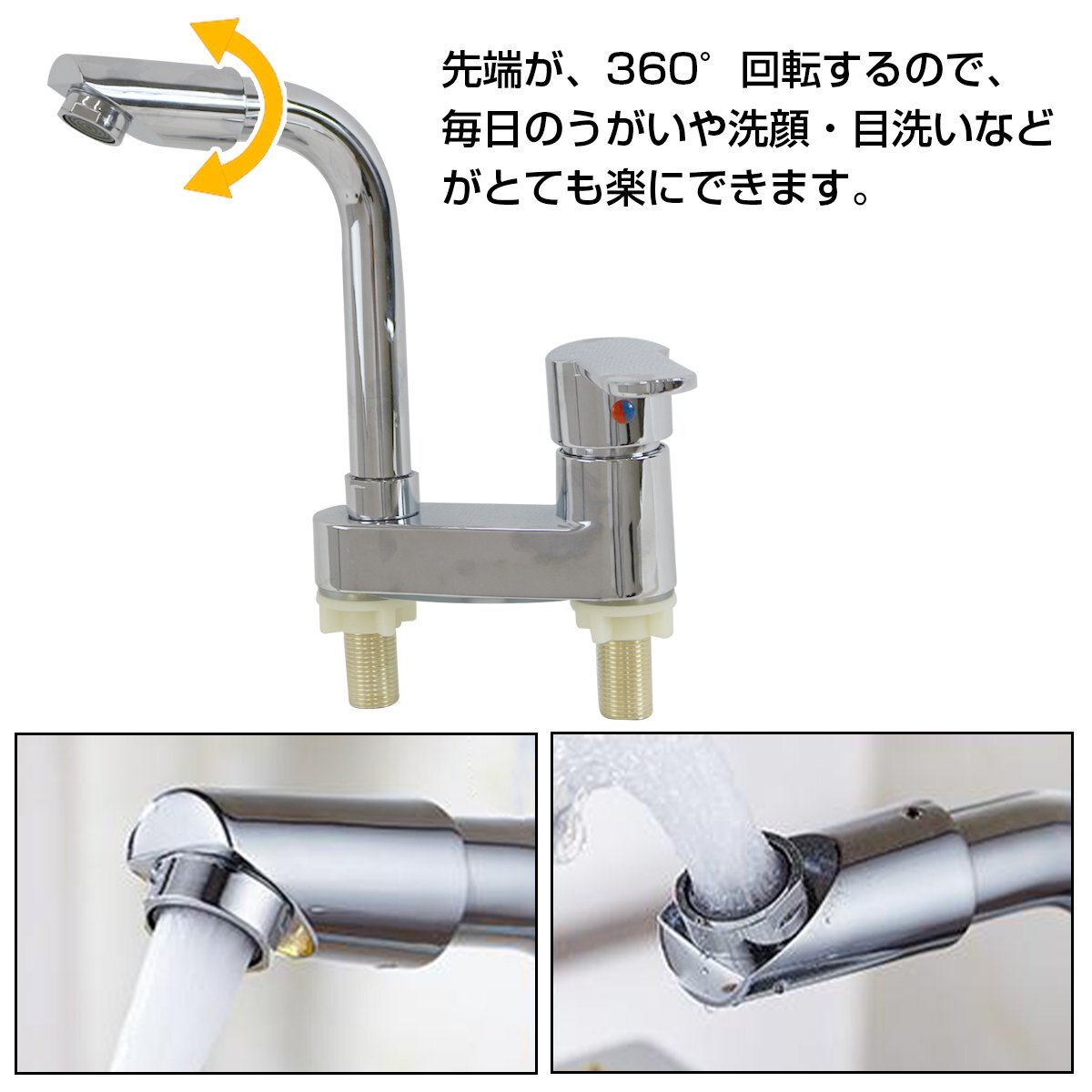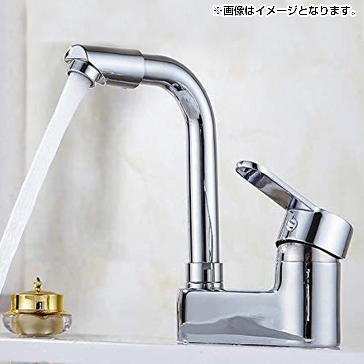 回転式 蛇口 洗面台 シングルレバー ツーホール式 混合水栓 温冷 対応 接続ホース 2本 立水栓 水道 洗面 洗髪 回転 ヘッド