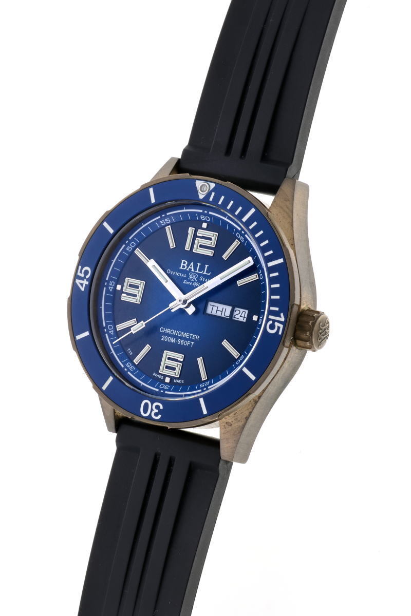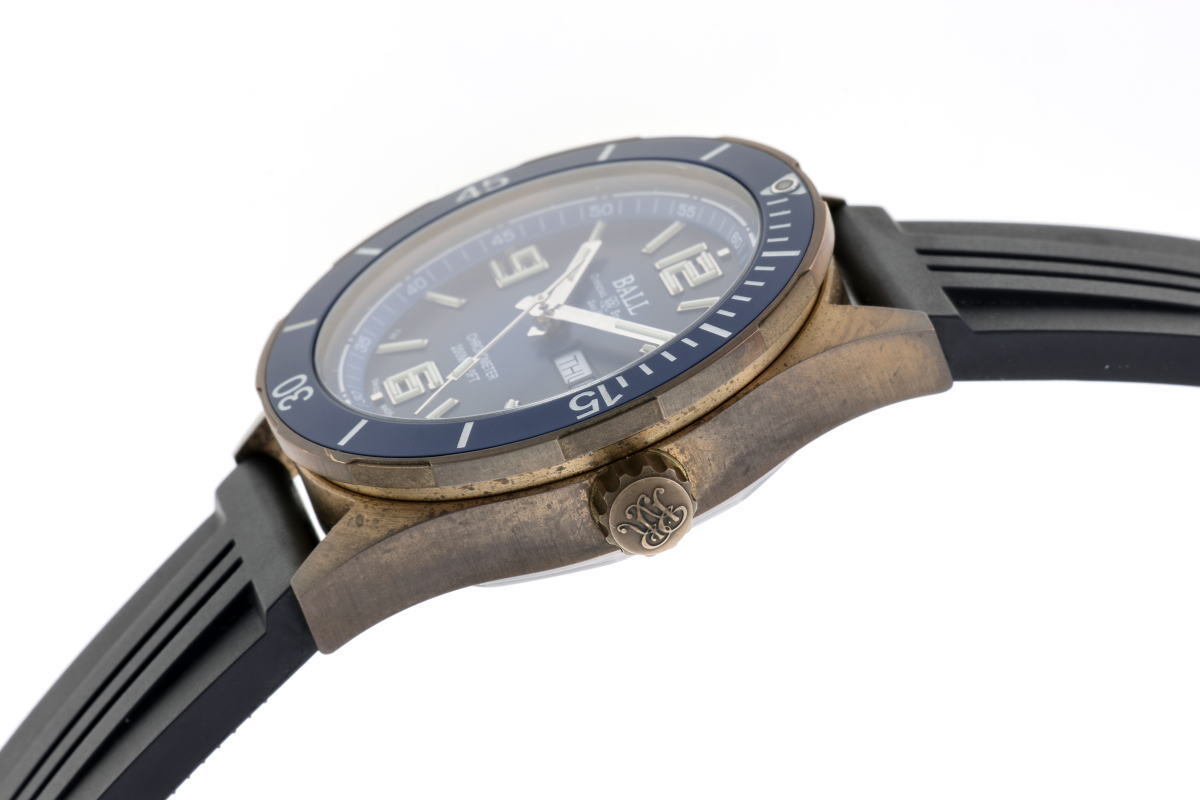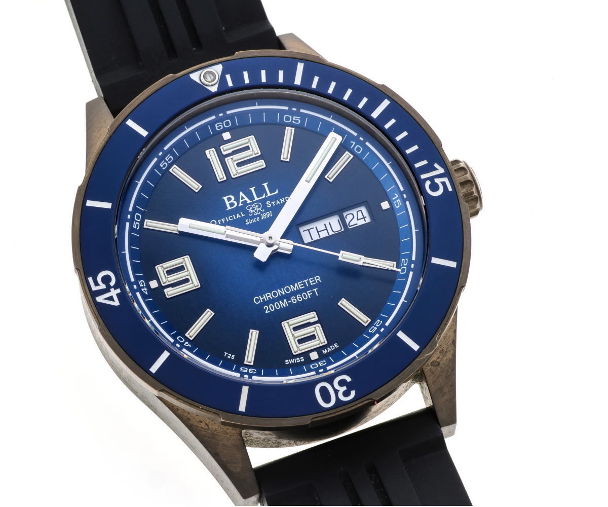 ブロンズ特有の経年劣化が見受けられます。-ボールウォッチの機械式ラウンドウォッチ。ブルーグラデーションダイアル。