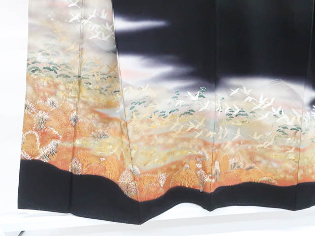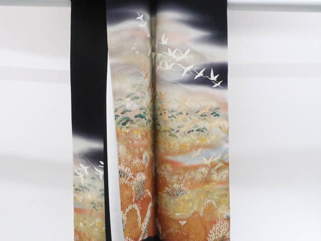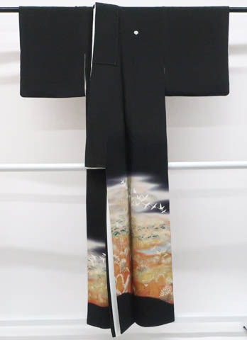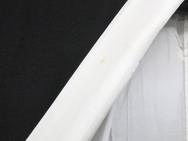 リサイクル商品のため、比翼裾・衿・比翼衿・右前袖に汚れがございますが着用可能なお品です。 地色は黒です。 1枚目の画像が近いお色かと思われます。 素材は正絹です。 |