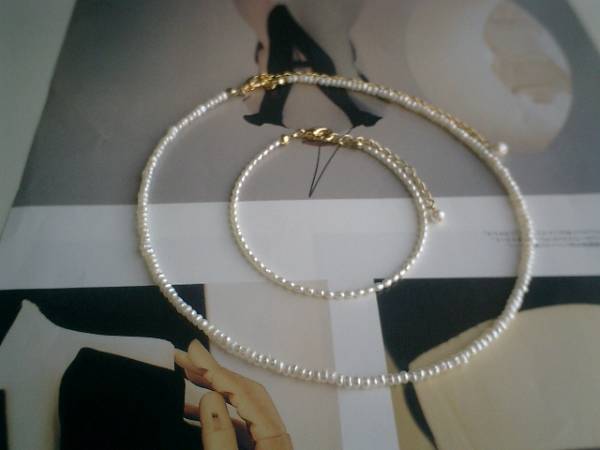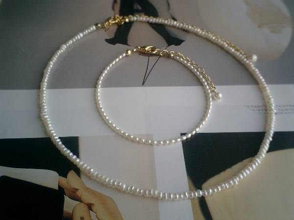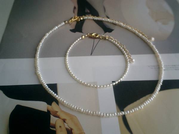 ロマンチック・パターンシリーズです♪可憐な淡水パールのネックレスとブレスレット2点セットです♪極小の淡水パールがロマンチックな表情です♪ネックレスの芥子パールは2×3ミリ位です♪長さは40センチ+アジャスター12センチで最長52センチ位です♪ブレスレットは3×2ミリ位のライスの淡水パールです♪長さは16センチ+アジャスター6センチで最長22センチ位です♪お揃いのネックレスや単品でも出品しています♪シンプルでいつまでも着けられるデザインを考えて作りました!ハンドメイドをご理解頂いてノークレーム、ノーリターンでお願いします