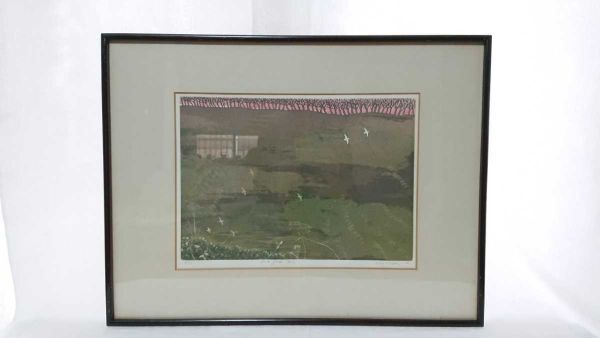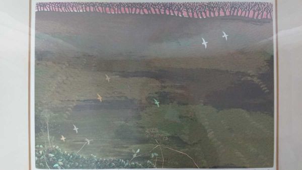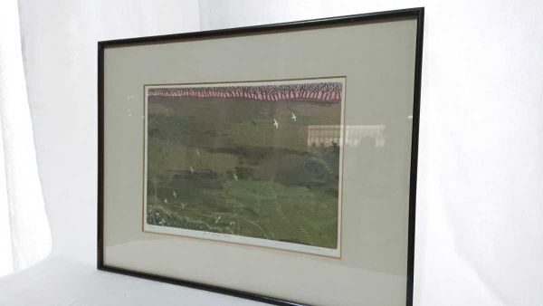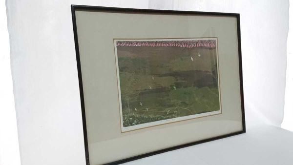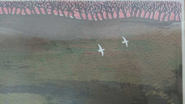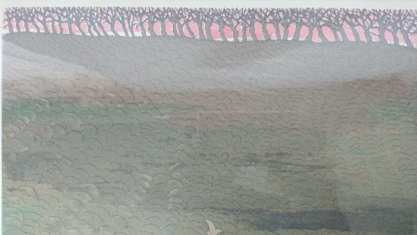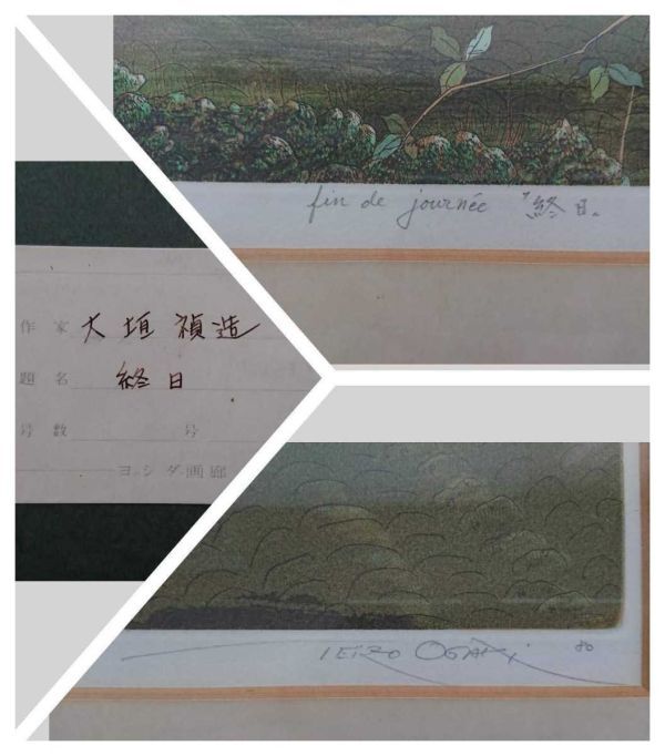 真作 大垣禎造 1980年銅版画「fin de journe 終日」画42×30cm 京都府出身 在仏作家 桑田道夫に師事 田舎の美しい自然 詩情豊かな作品 2654