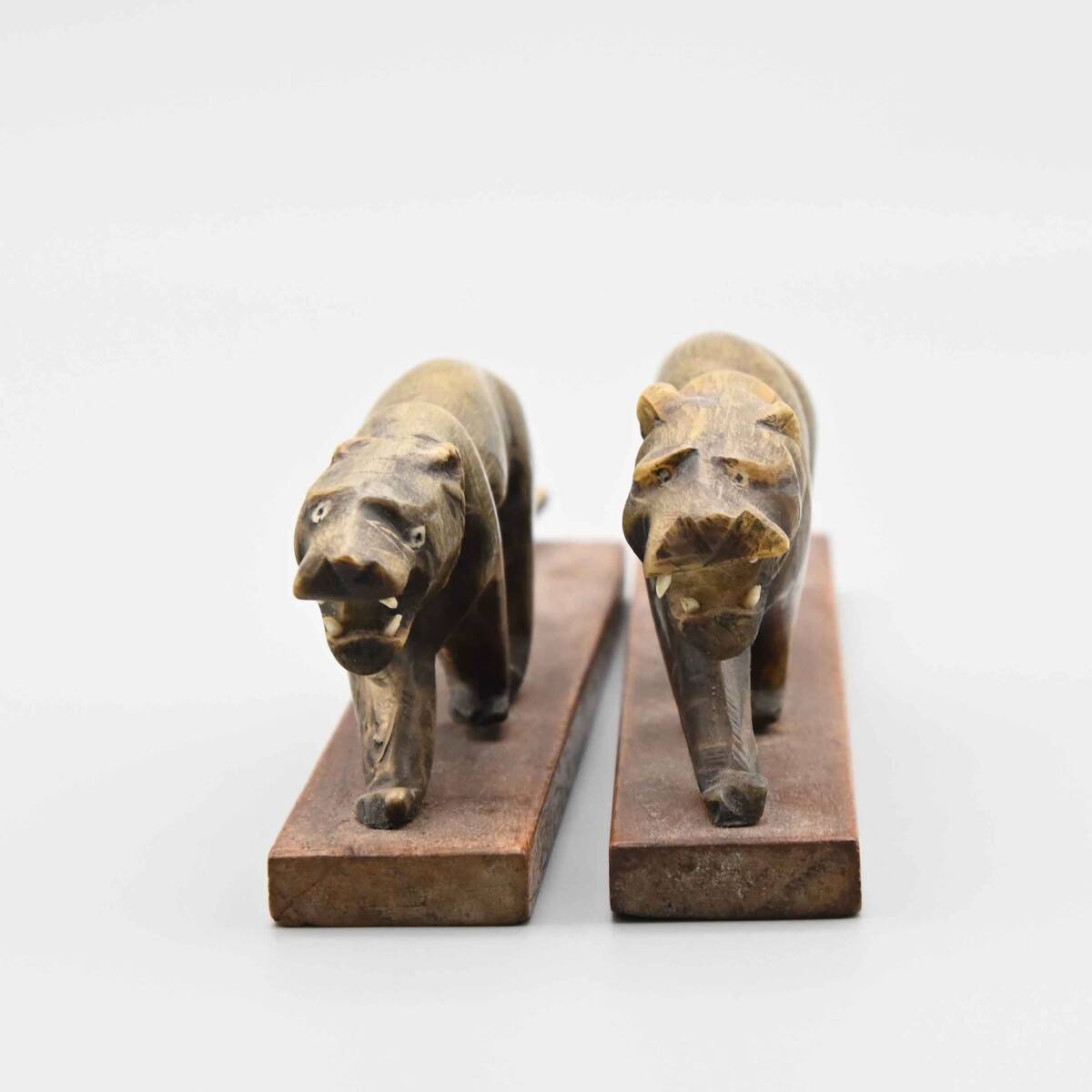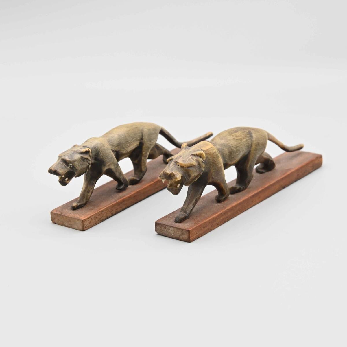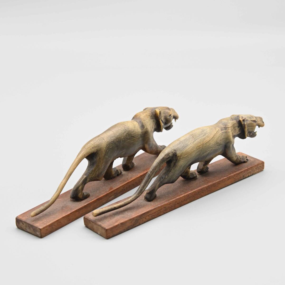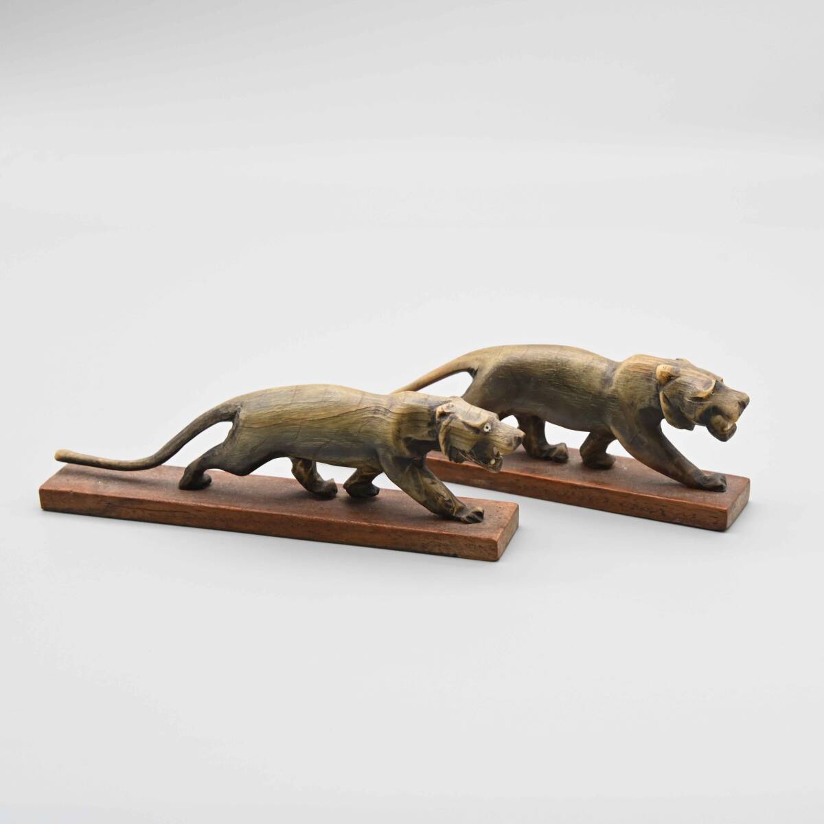 ご覧いただきましてありがとうございます。 トラの置物2体です。 材質は水牛の角を削って作られています。 目や牙に象嵌細工が施されています。 ★サイズ 幅 16.4cm × 2.7cm 高さ 約5.5cm 入札前に必ずお読みください ・ヴィンテージ品もしくは中古品になります。こちらが気が付かなかったキズ等がある場合がございます。また、お使いのモニター、タブレットによっては実物と色味が異なる場合があります。ご了承ください。 ・休祭日は、私用により連絡ができない場合が御座います。ご了承ください。 ・商品出品ページからのご質問につきましては、気が付かず返答ができない場合がございます。ご了承ください。 ・終了まじかの入札の取消しはできかねます。ご了承下さい。 ・携帯もしくはフリーメールアドレスでご入札される方は、落札時の通知メールなどの連絡やお客様からの連絡がとれない場合が多くあります。ドメイン指定、拒否設定等の解除設定をお願い致します。数回ご連絡しても連絡がつかない場合、キャンセルとさせて頂く場合がございます。お気を付け下さい。 ・落札後、5日以上連絡が無い場合は、即刻ブラックリストに登録させて頂きます。お気を付け下さい。 ・ヴィンテージ品により一点物が多い為、商品の交換は受け付けていません。 ・商品の返品は配達中による破損、初期不良のみ受け付けております。その場合、送り返す送料はご負担ください。また、返金金額は商品代金からヤフオク手数料等込みの10%を引いたうえで返金致します。 ・お客様への評価につきましては、評価不要のお客様が多くいらっしゃいますので、評価を頂きましたお客様に評価をさせて頂いております。ご了承下さい。 | |||