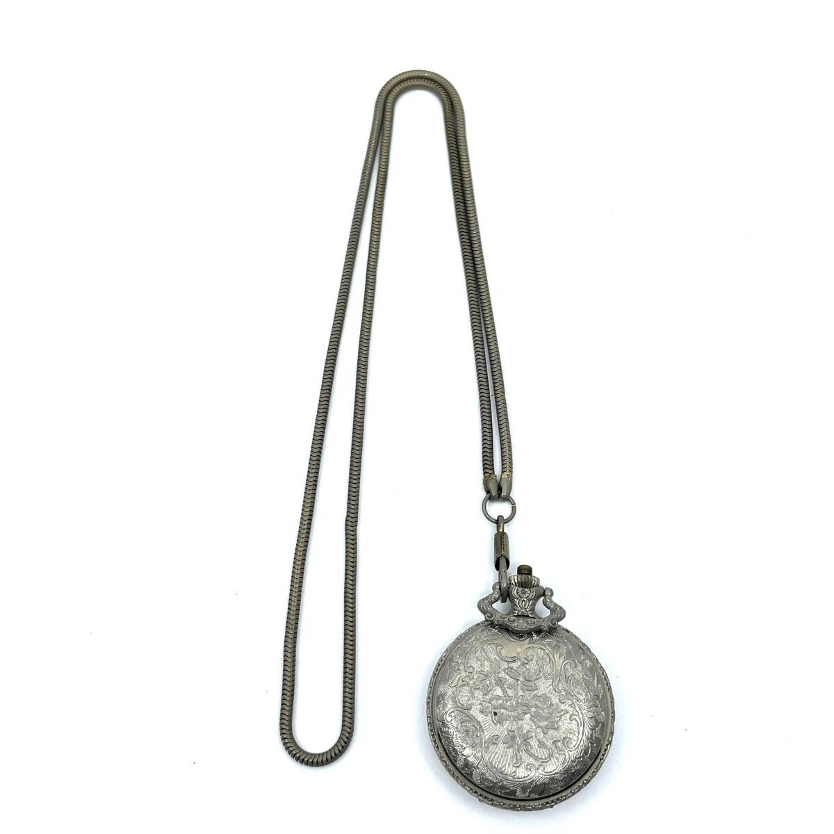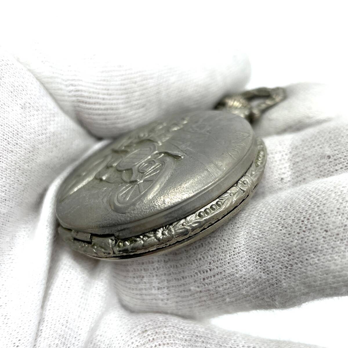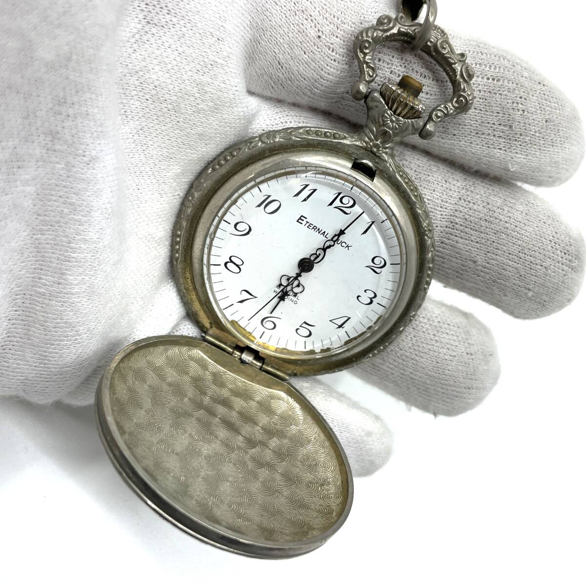 【不動】ETERNAL LUCK エターナルラック 手巻き 懐中時計 白文字盤 シルバー 馬車 人物 チェーン付き ユニセックス 提げ時計