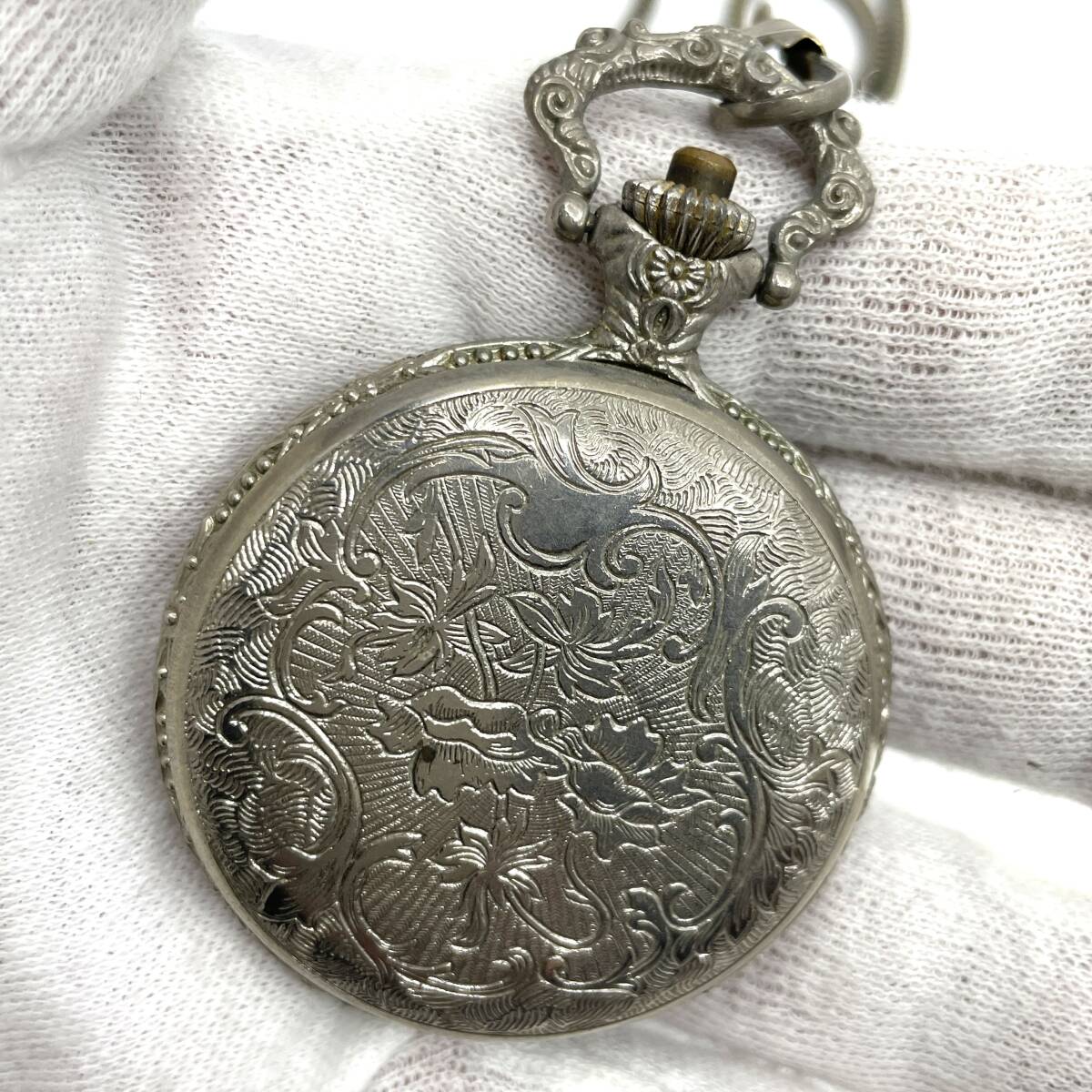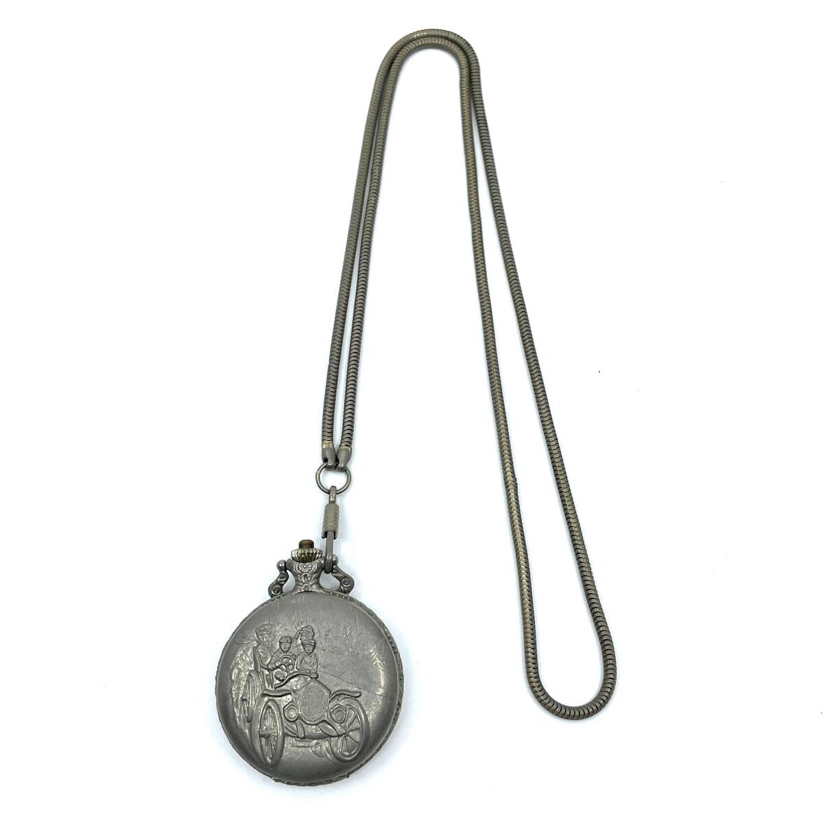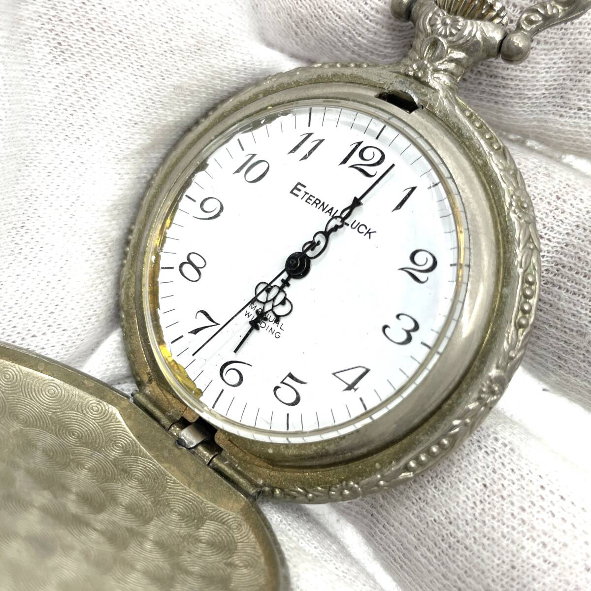 【不動】ETERNAL LUCK エターナルラック 手巻き 懐中時計 白文字盤 シルバー 馬車 人物 チェーン付き ユニセックス 提げ時計