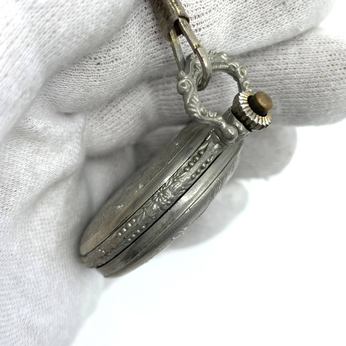 手巻き 懐中時計 白文字盤 シルバー 馬車 人物 チェーン付き ユニセックス 提げ時計