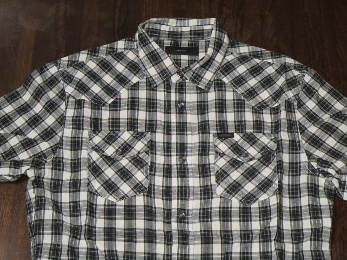 送料無料!正規店購入 美品!DIESEL ディーゼル 半袖チェックシャツ グレー系 Sサイズ